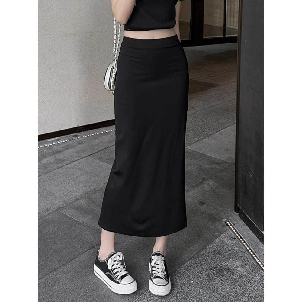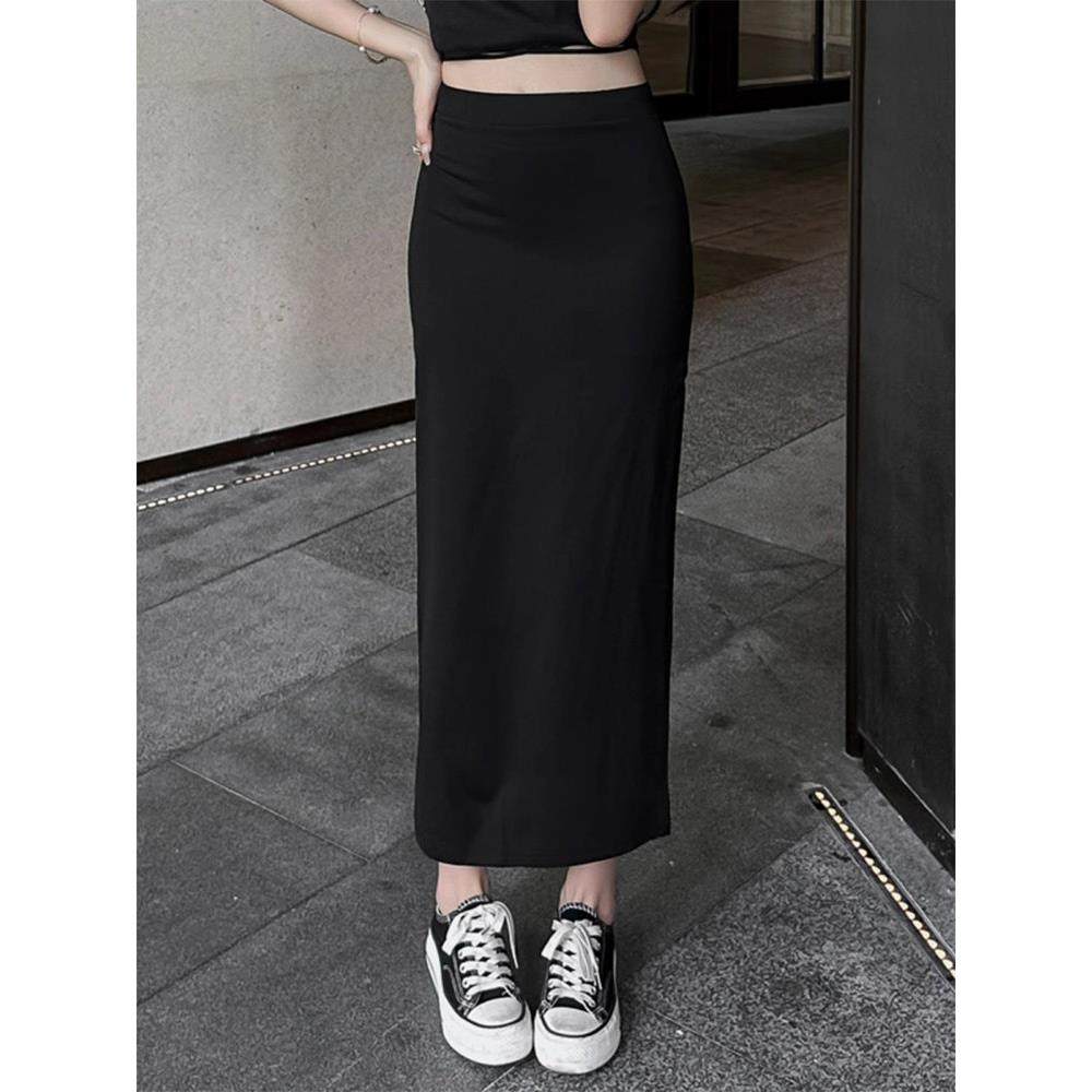 首页> 女装> 法式黑色半身裙女士夏季高腰显瘦开叉a字半裙气质赫本风包臀长裙