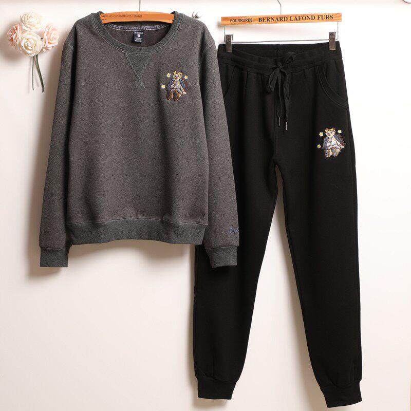 首页> 女装> 韩国加绒加厚刺绣纯棉运动套装女2025秋冬新款时尚卫衣两件套装女