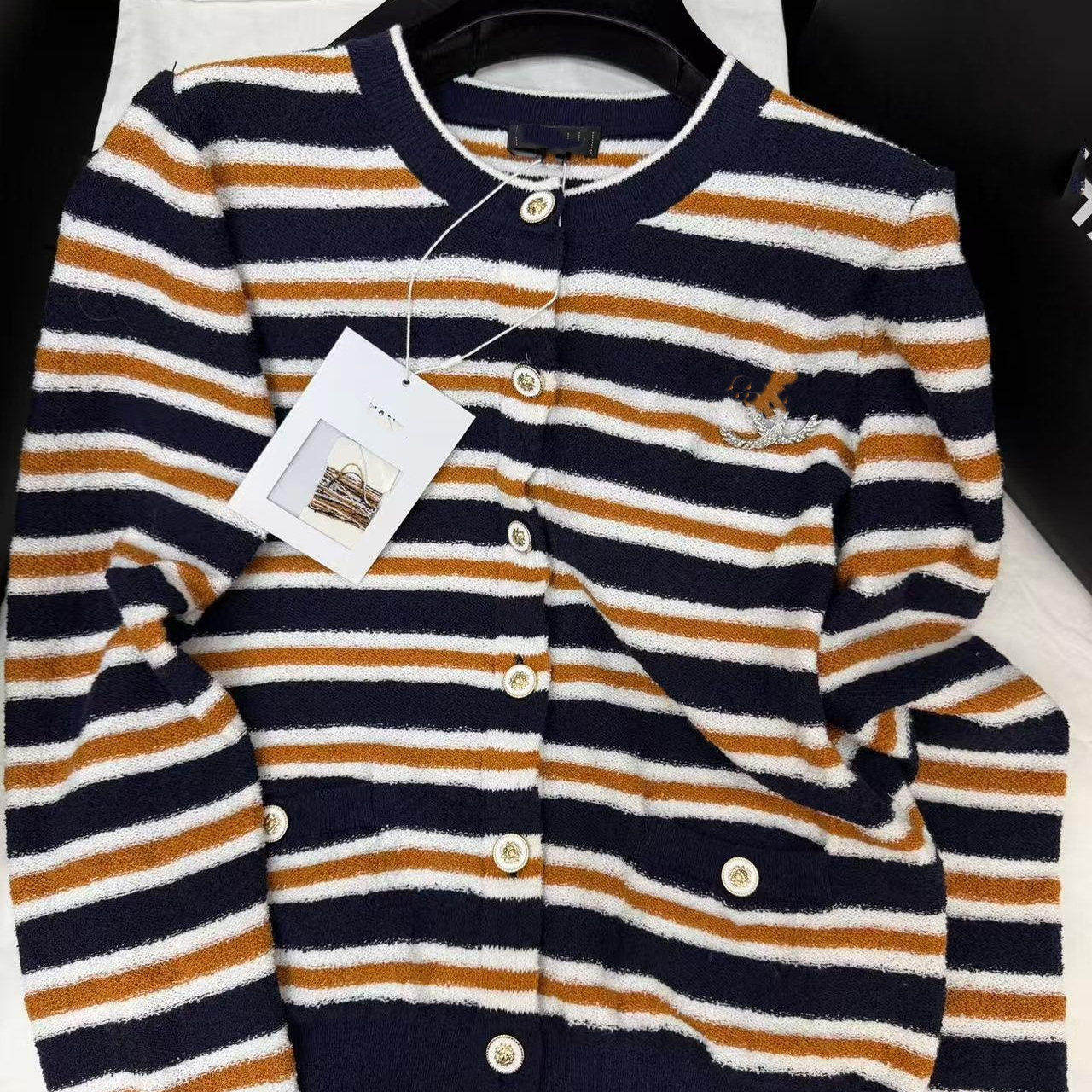 好漂亮条纹针织开衫外套女2025年冬季新款短毛衣宽松休闲热销
