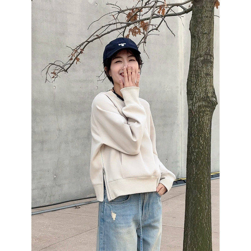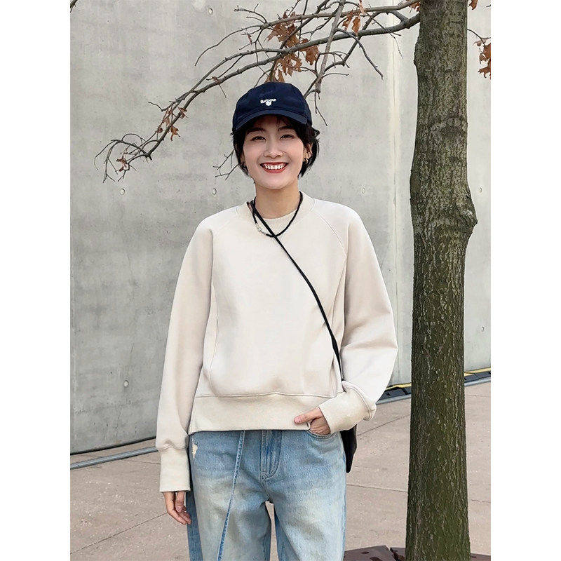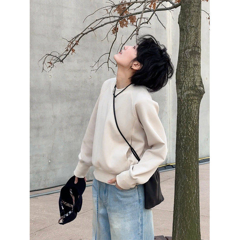 2025秋季新款女卫衣卡其色圆领套头衫 设计感小众女装LANGQING TO