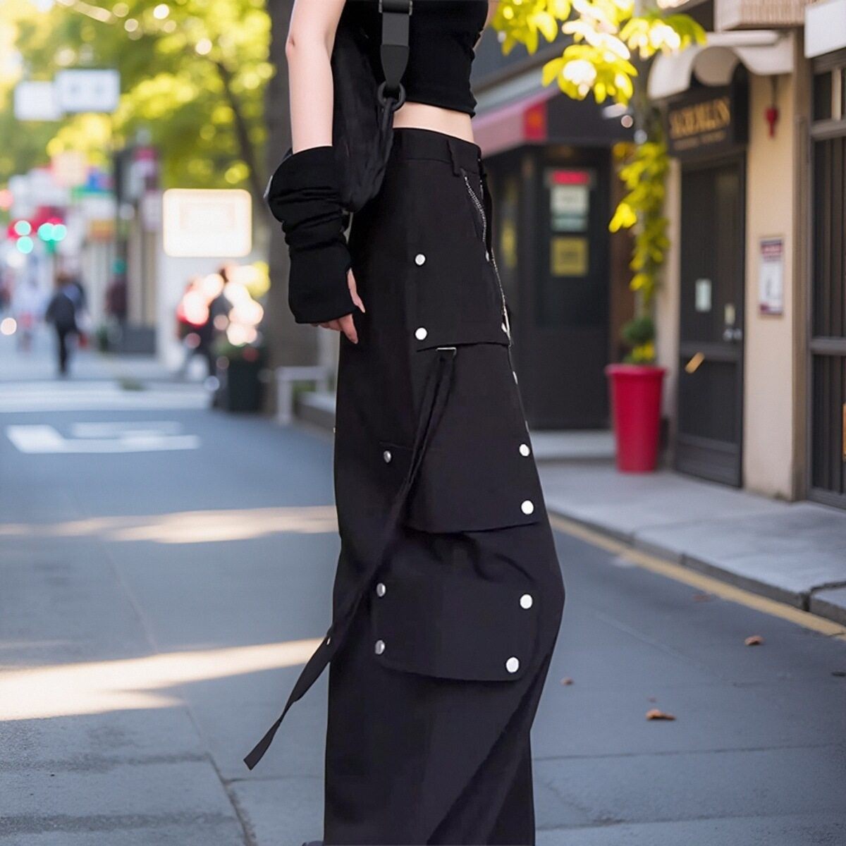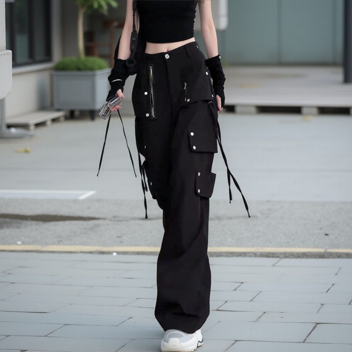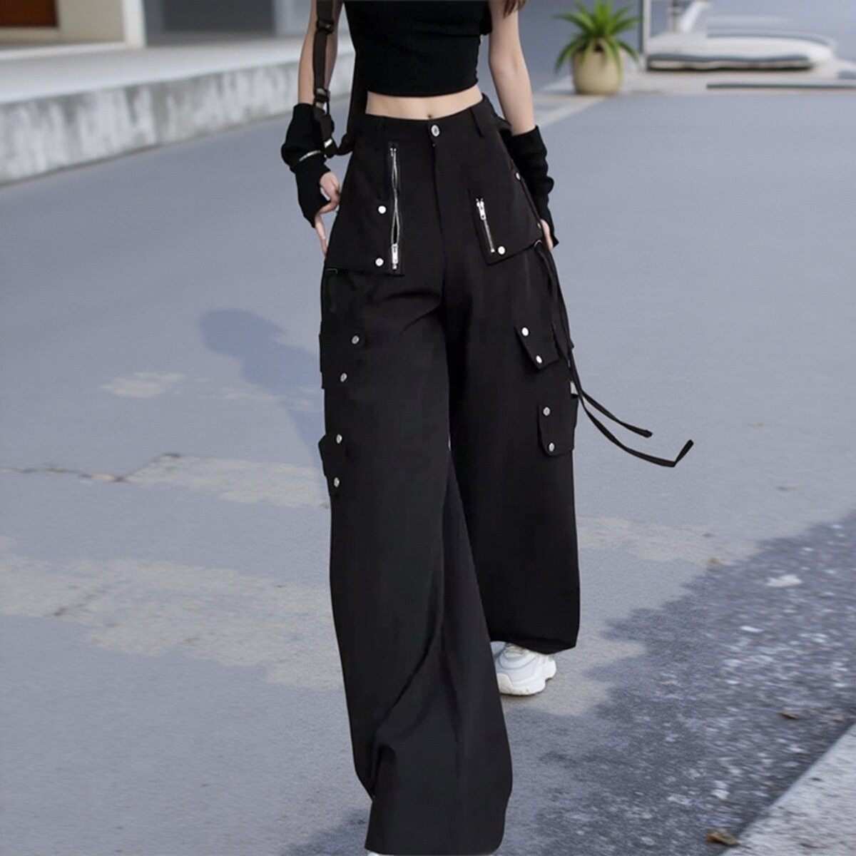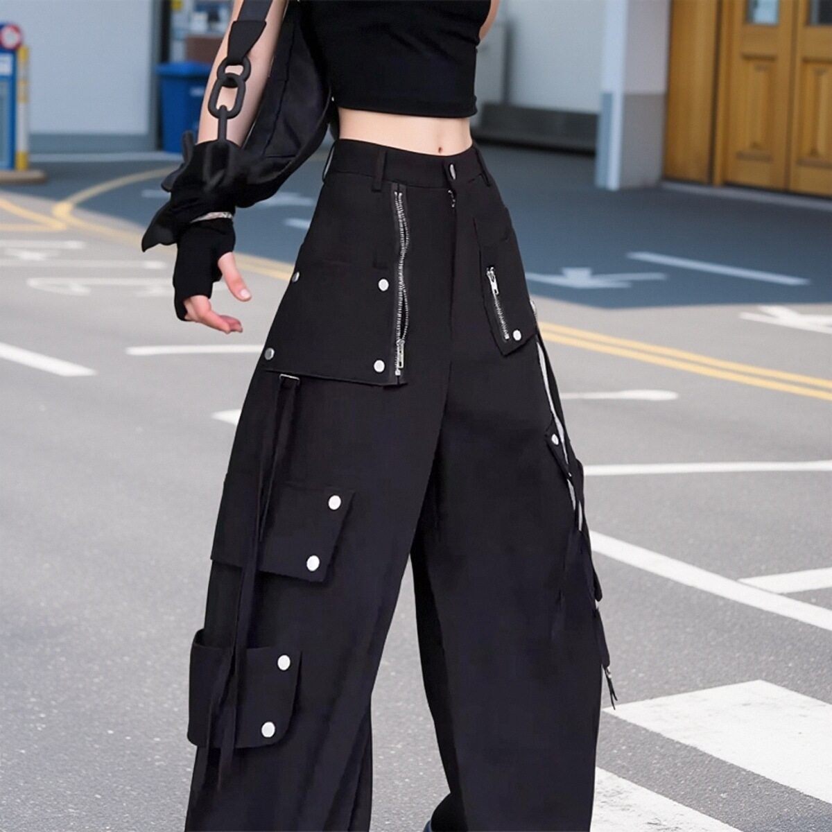 重工拉炼口袋设计潮流工装裤女2025年春季新款美式炸街休闲宽裤