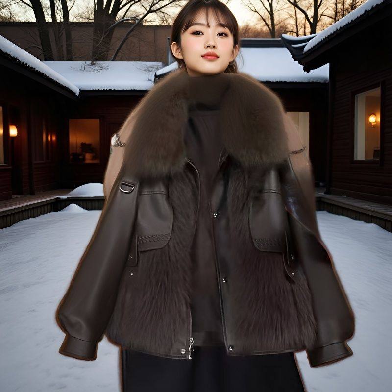 大码胖MM2025新款仿狐狸毛皮草外套女环保毛皮毛一体毛毛大衣过冬