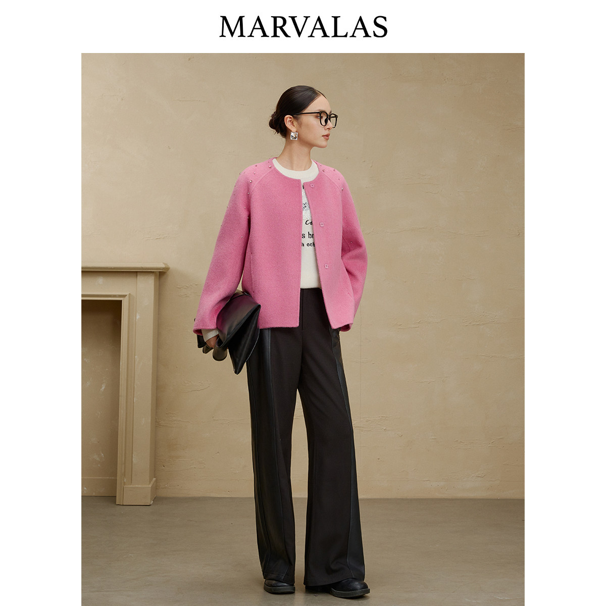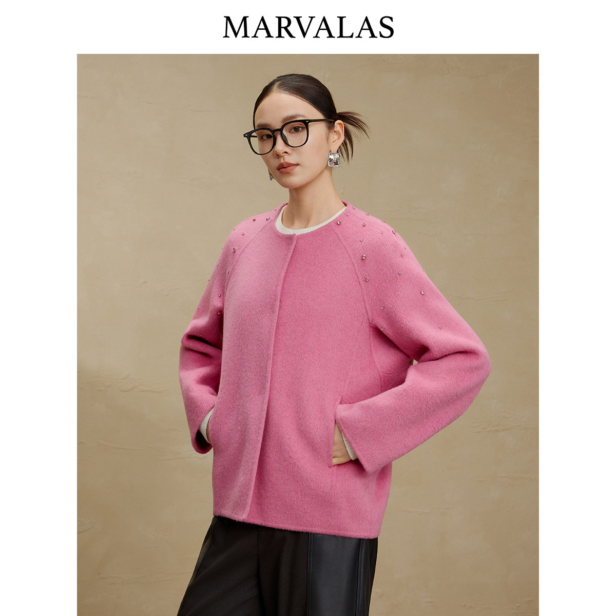 【添添粉丝专属】曼德诗绵羊毛毛呢外套2025冬季新款时尚减龄大衣