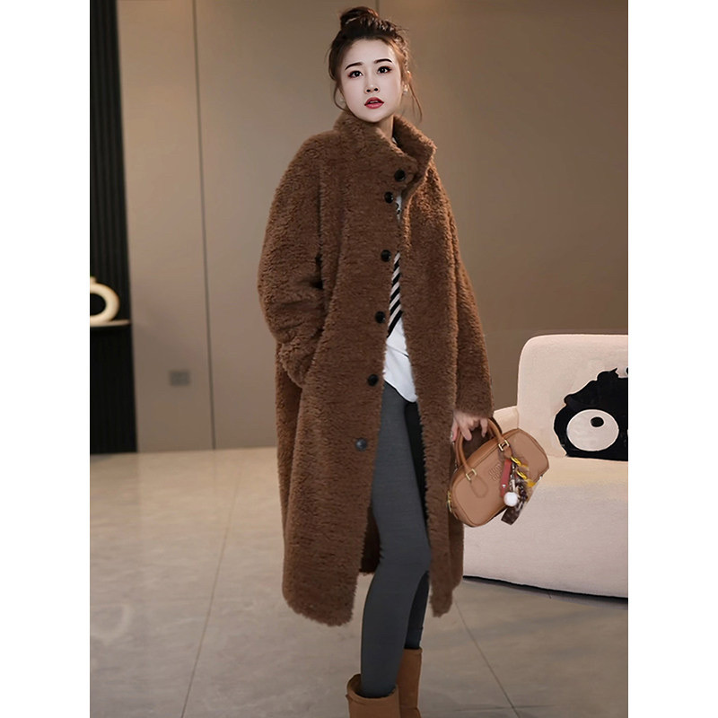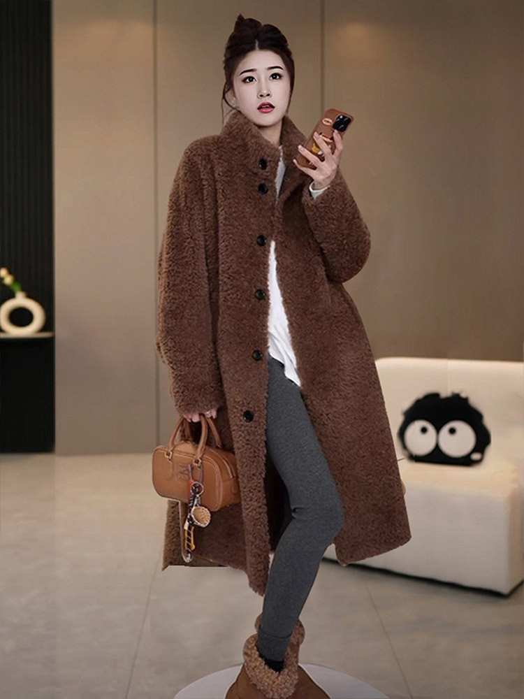 A801新款爆款皮毛一体中长款立领一百羊毛正宗海宁皮草外套女冬季