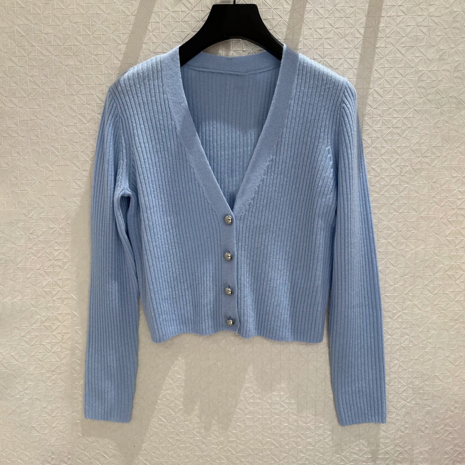 首页> 女装> 深圳南油高端女装2026春季新款学院风极简蓝色显瘦百搭针织开衫女