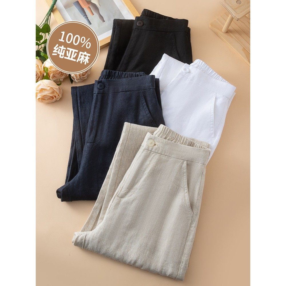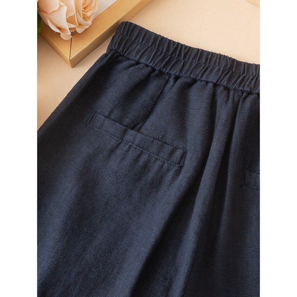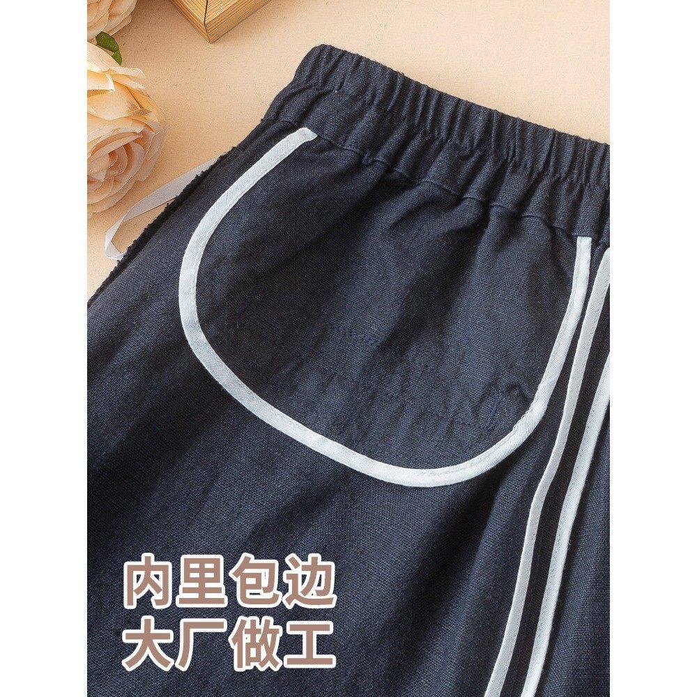 藏青色纯亚麻阔腿裤女2025春夏加厚棉麻高腰显瘦宽松休闲直筒长裤