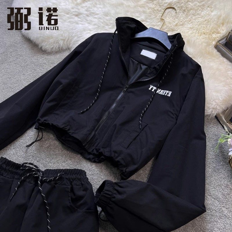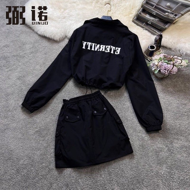 减龄休闲运动套装女新款宽松显瘦拉炼开衫上衣高腰短裙时尚两件套
