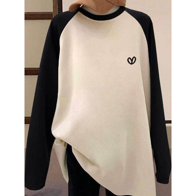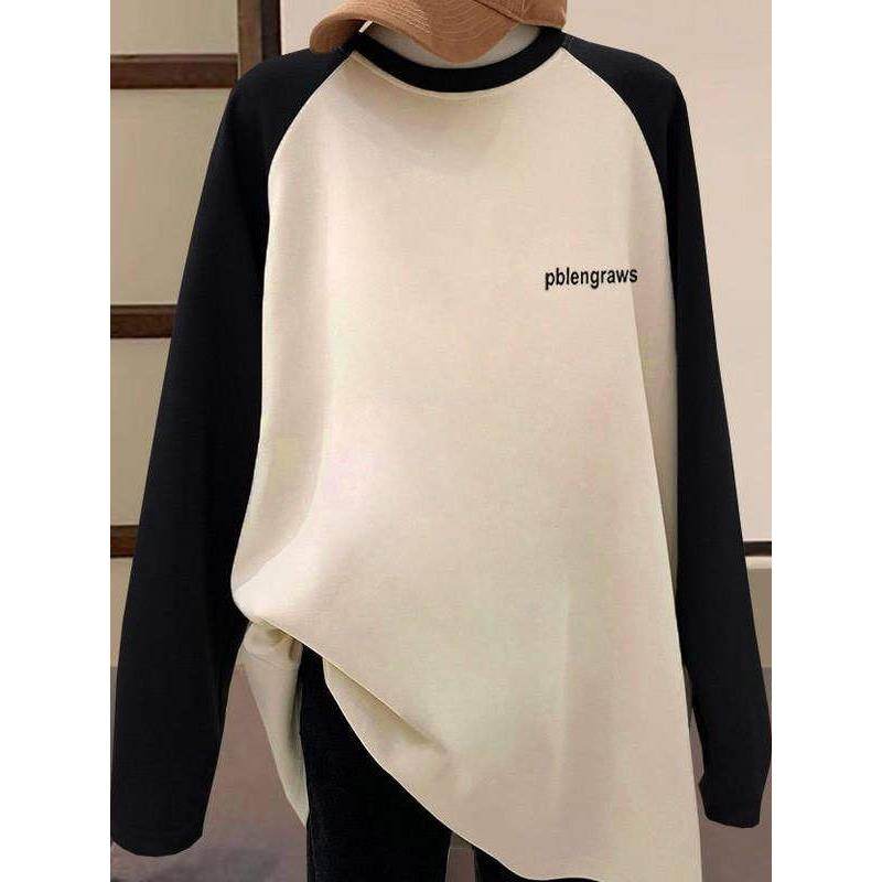 韩系中长款加厚插肩磨毛长袖t恤女打底衫遮屁股鲨鱼裤上衣春秋季