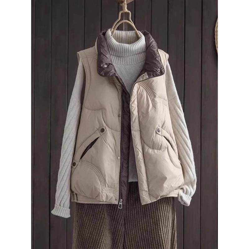 立领无袖羽绒棉服马甲女秋冬款宽松百搭加厚夹棉背心坎肩外套棉衣