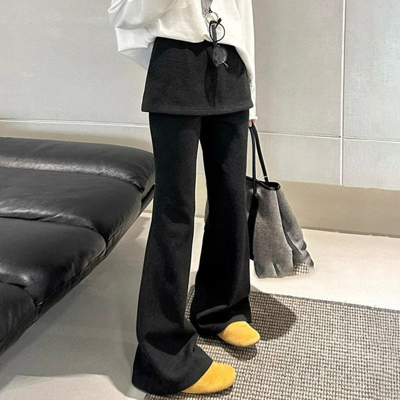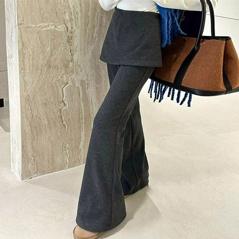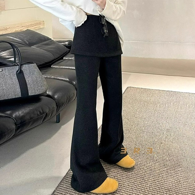 首页> 女装> 小个子150灰色假两件微喇裤女冬季加绒加厚外穿屁帘裤休闲喇叭裤