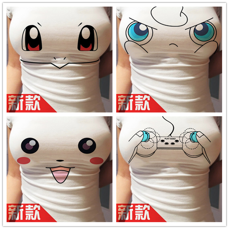 包邮3D性感大胸奶显胸大眼睛表情包女主播T短袖紧身修身凸显T恤女