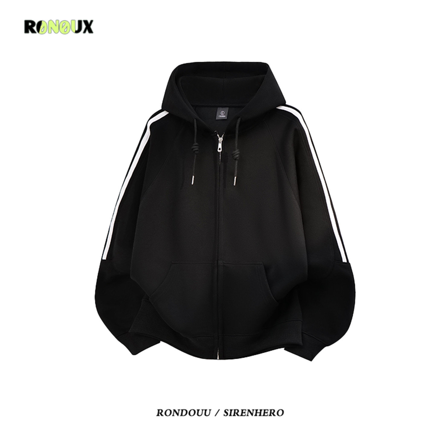 三条杠连帽卫衣外套女春秋2025新款宽松oversize潮牌美式拉链开衫