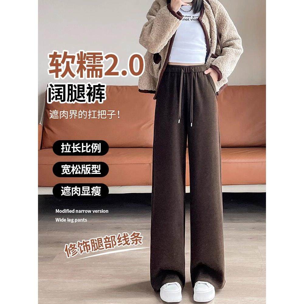 首页> 女装> 咖色美拉德加绒糯米裤女春秋2025年新款高腰休闲慵懒拖地阔腿裤子