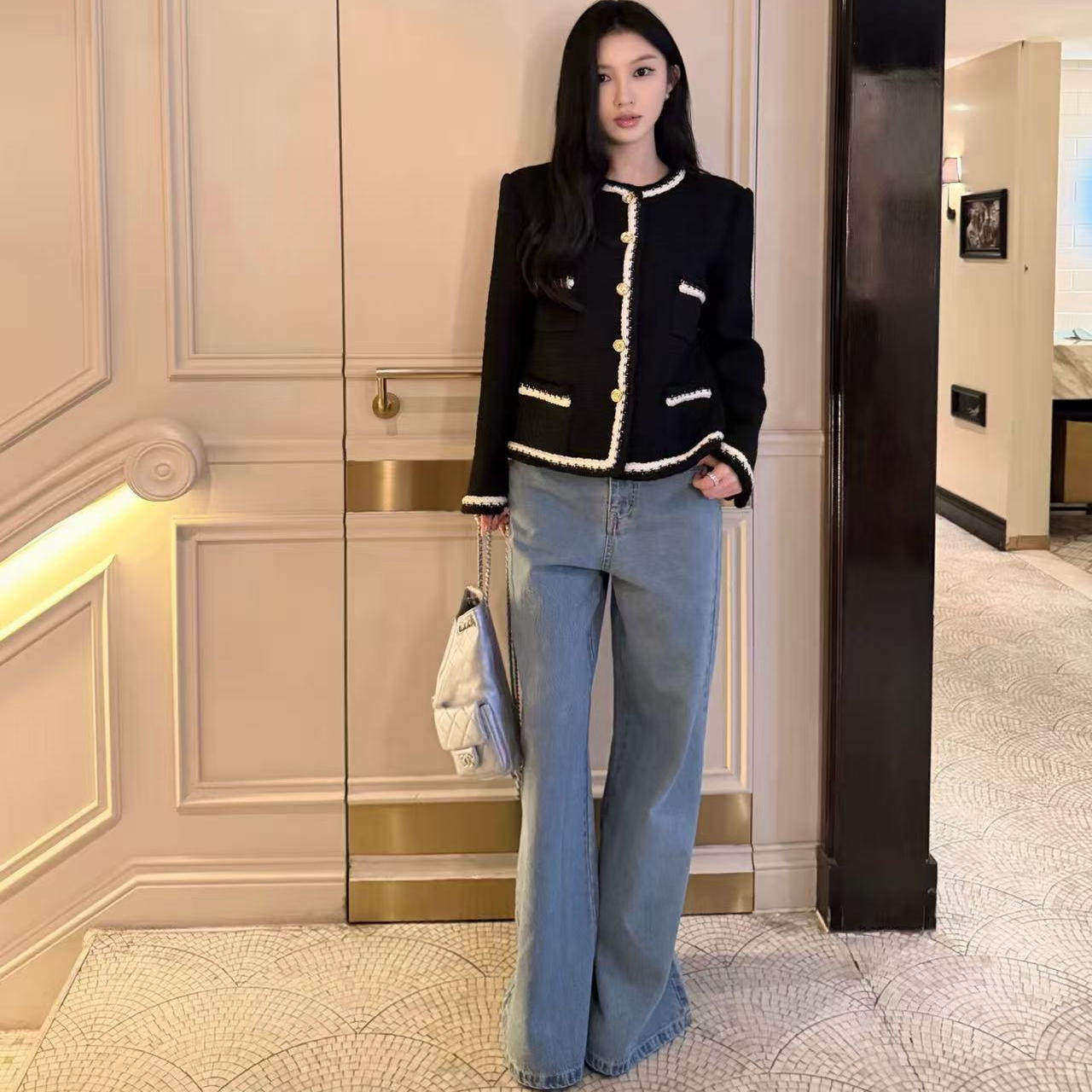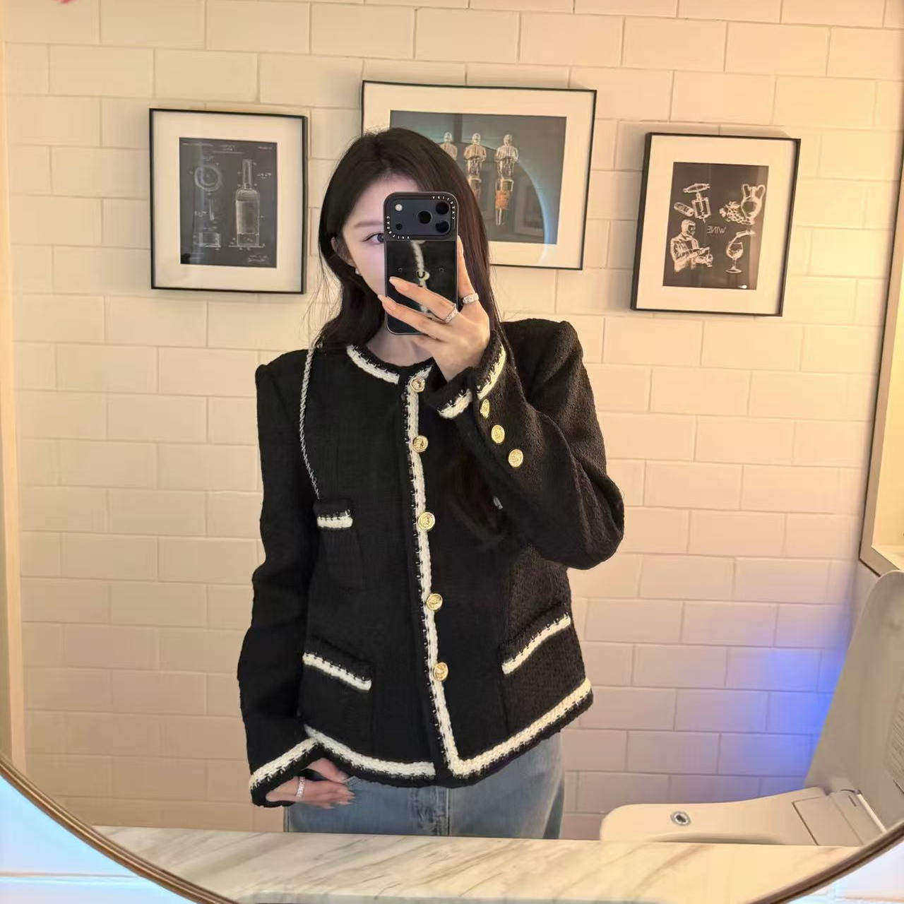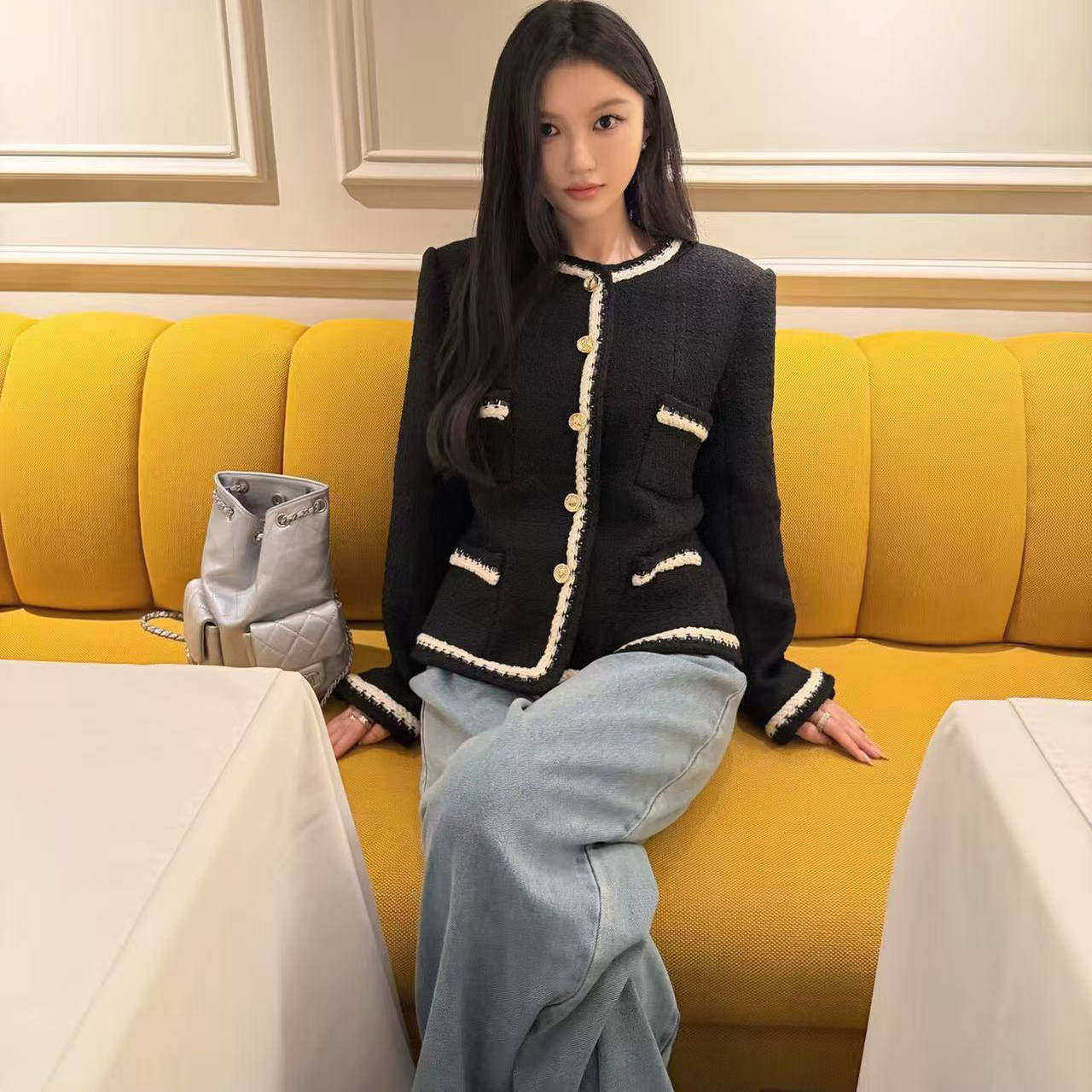 好漂亮好漂亮黑白拼色粗花呢小香风外套女2025年冬季新款短上衣潮
