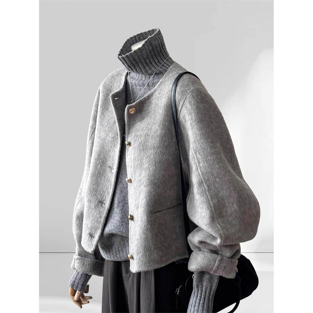 短款灰色双面羊绒毛呢子大衣外套女2025年秋冬季新款高级感小个子