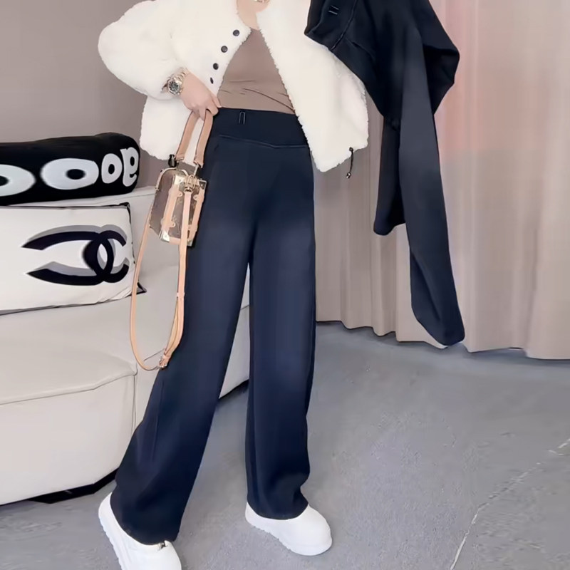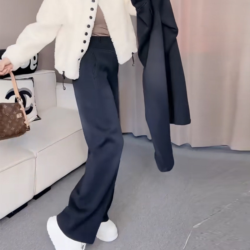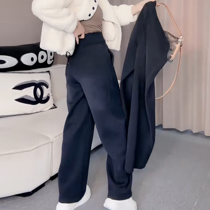 2026春季时尚休闲卫裤欧货松紧刺绣高腰显瘦宽松净版简约阔腿长裤