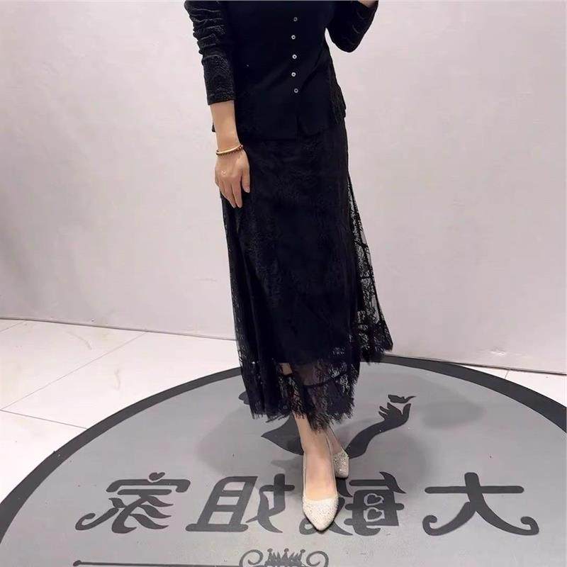 2026春装新针丝缘时尚潮流蕾丝半身裙加大码女装200斤长裙女5335