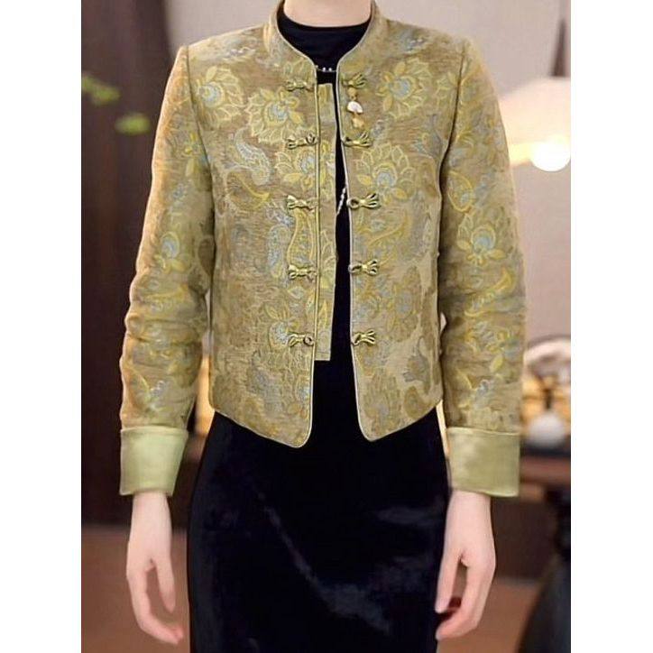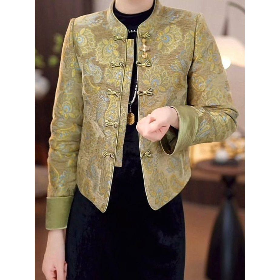 新中式宋锦提花缎加厚棉衣外套2025冬新款显瘦保暖短款国风棉袄女