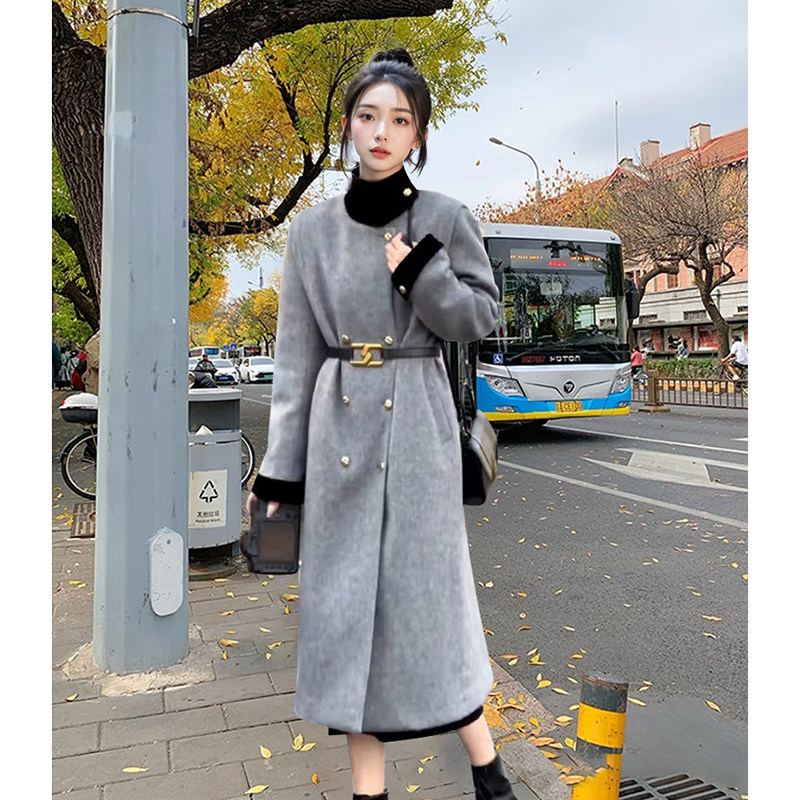 巴黎画报 气质时尚宽松中长款春秋新款立领双排扣呢子大衣女
