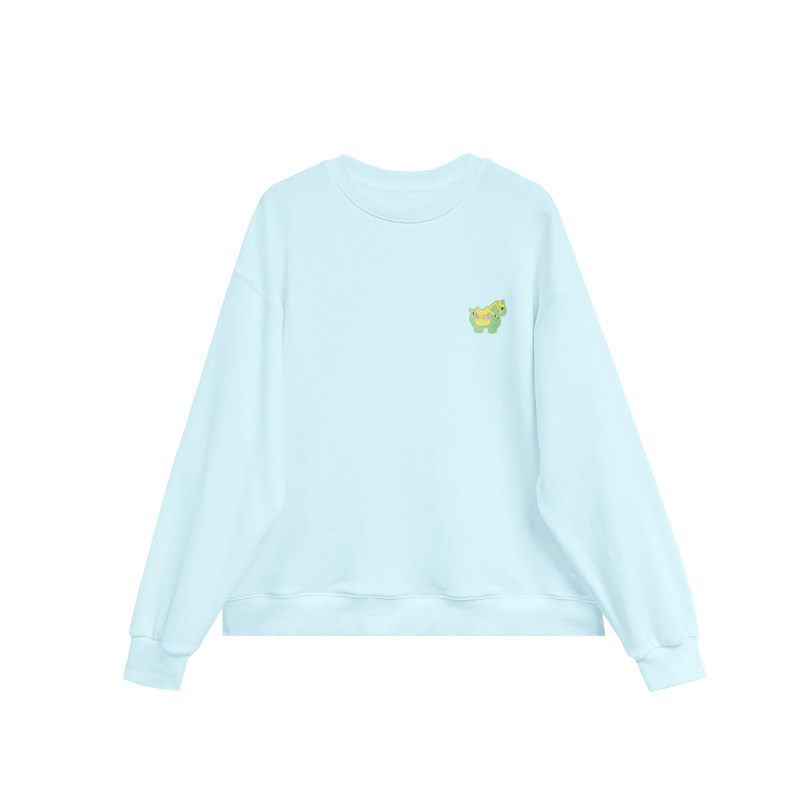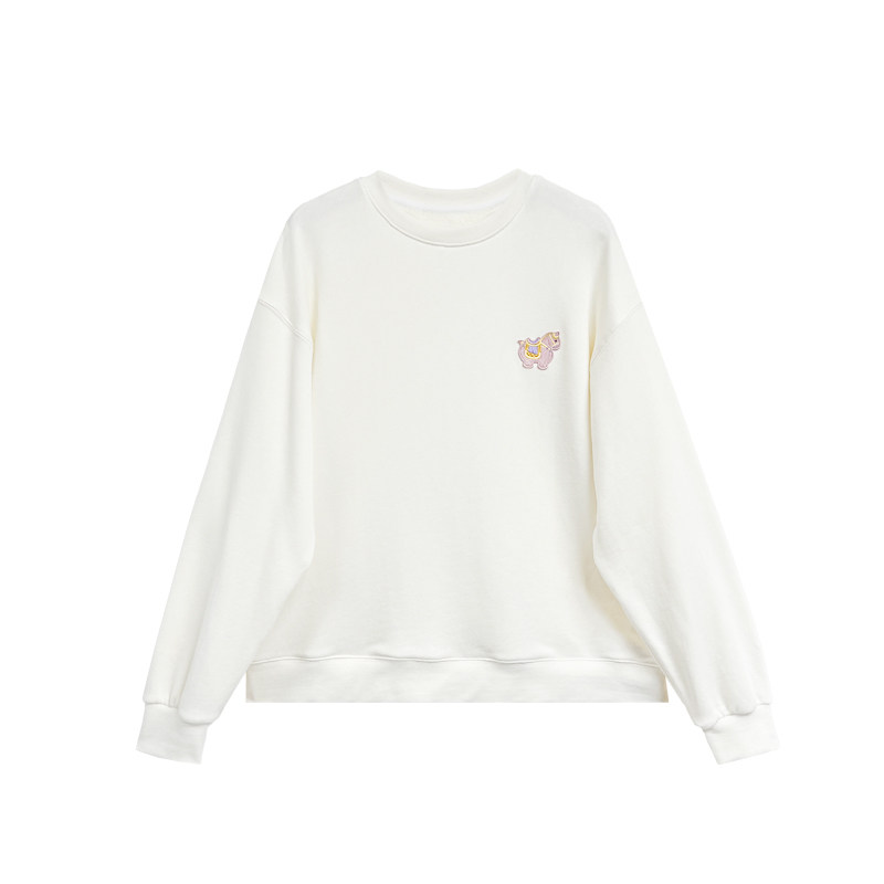 【橙庐】523500原创三彩萌马贴绣圆领落肩纯棉卫衣 女春季中国风