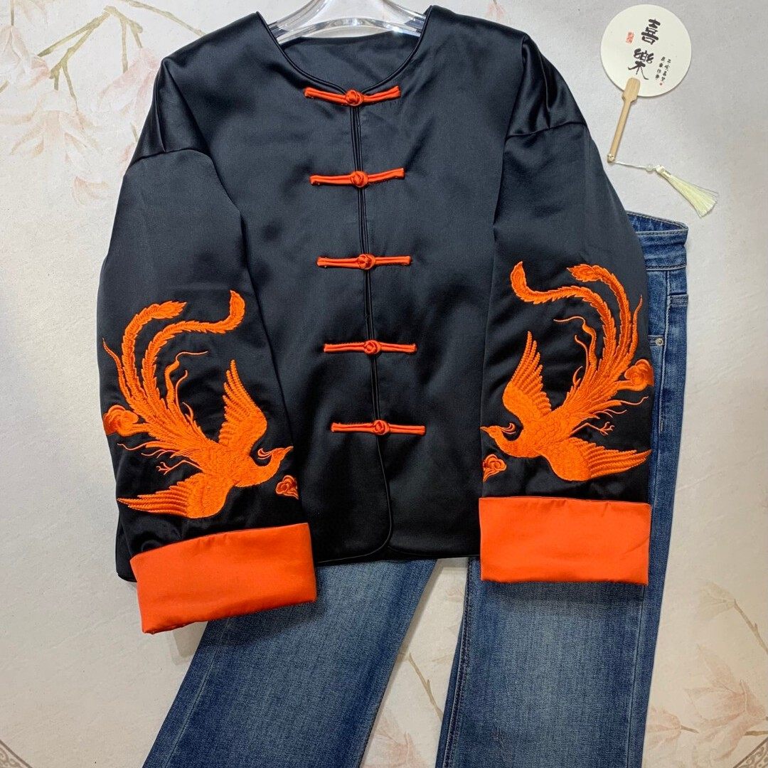冬上新!醋酸刺绣国风保暖棉服外套