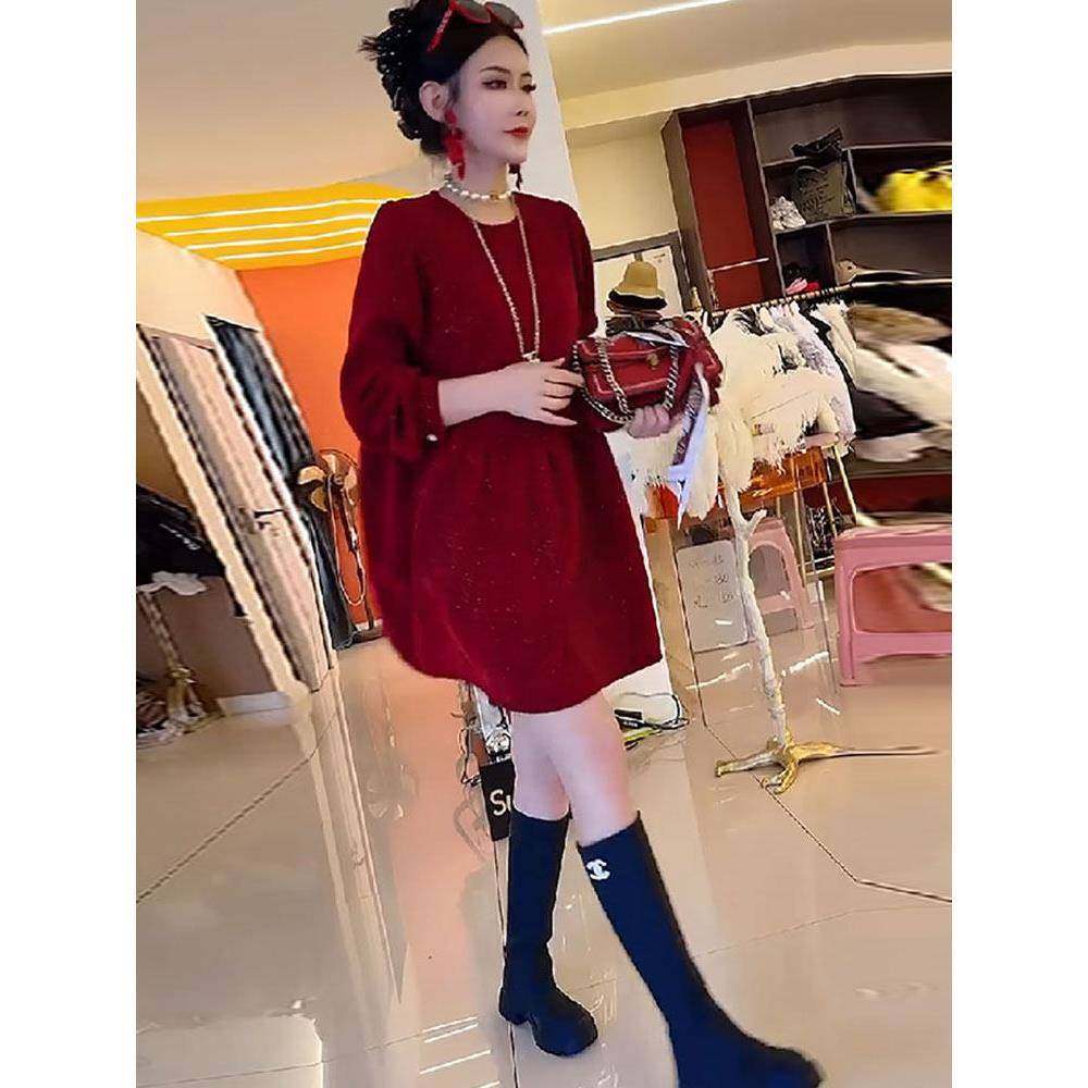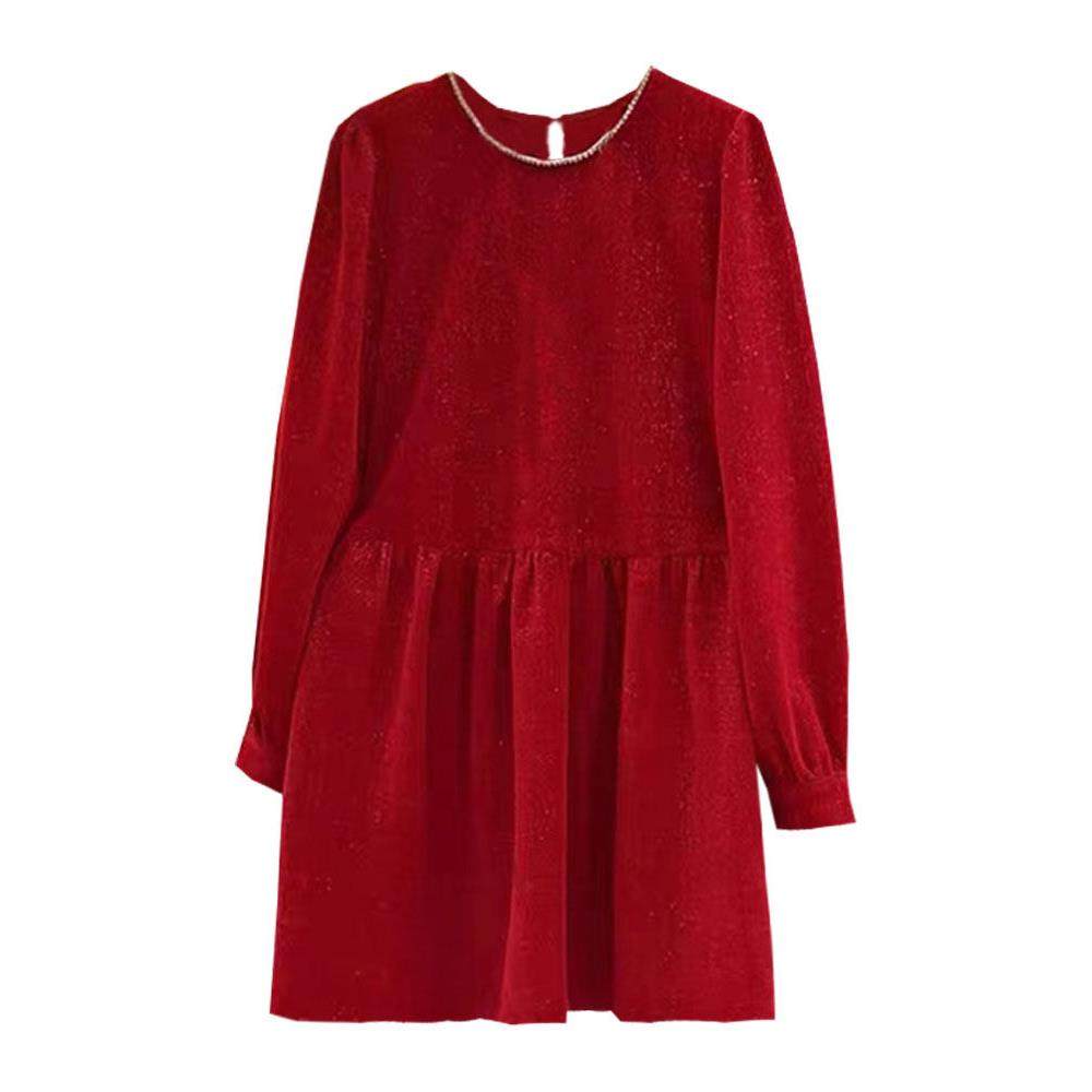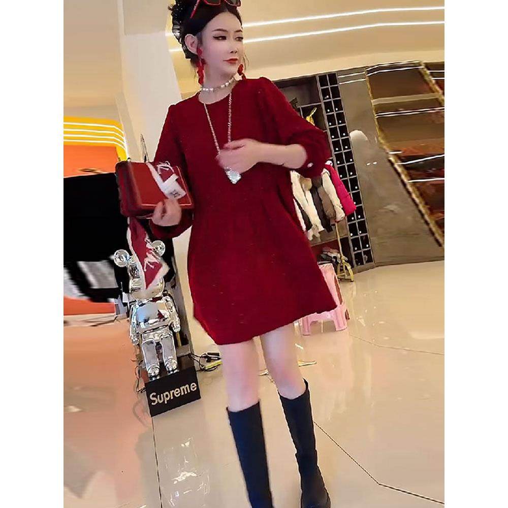 首页> 女装> 香港复古红色细闪亮片连衣裙女秋冬洋气减龄娃娃裙小香风大码裙子