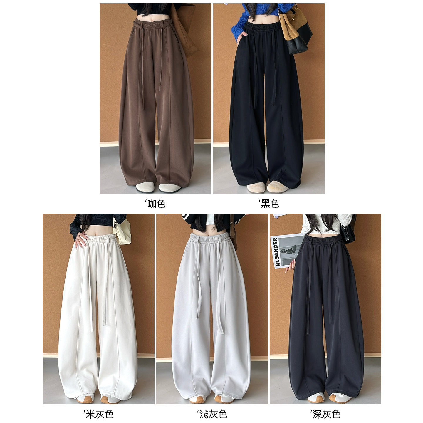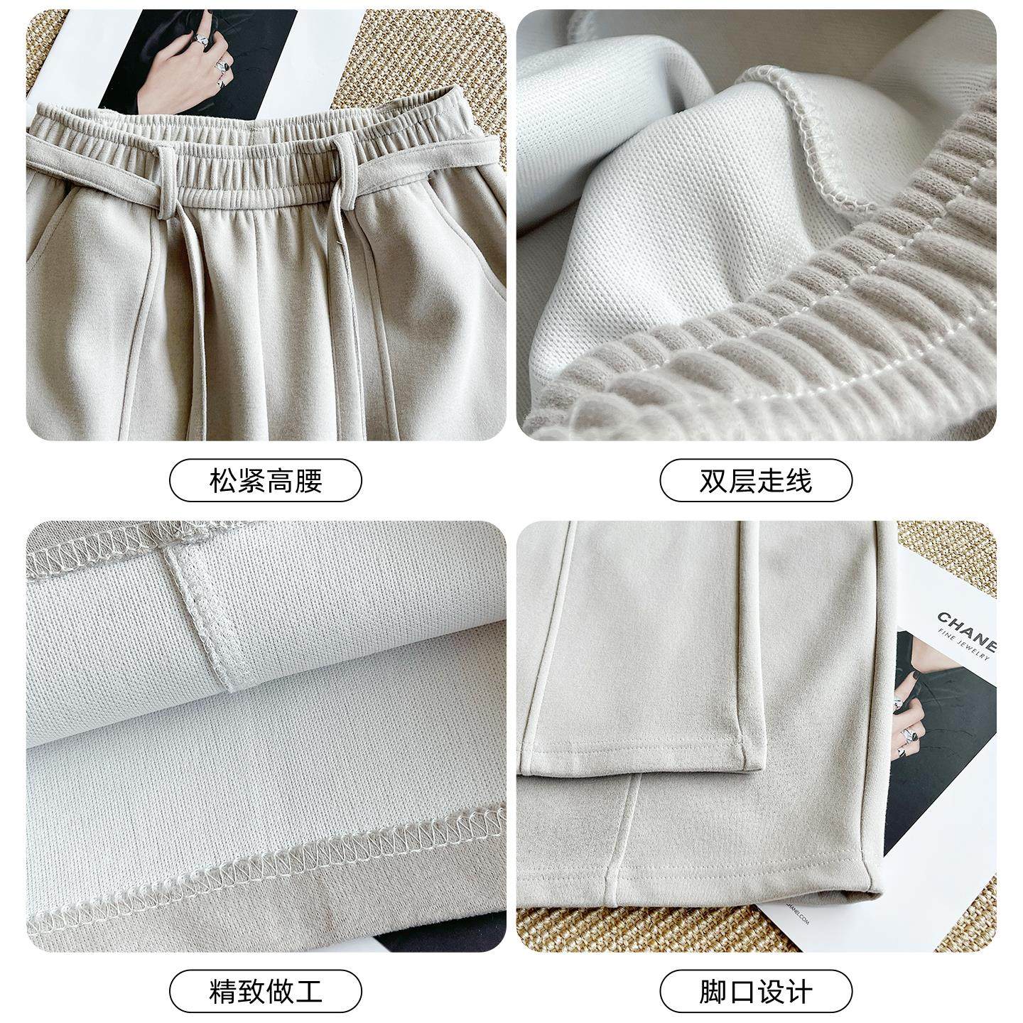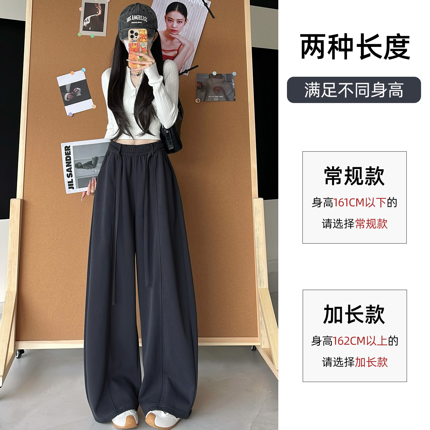 深灰色运动弯刀裤女秋冬2025新款高腰宽松显瘦垂感加绒阔腿香蕉裤