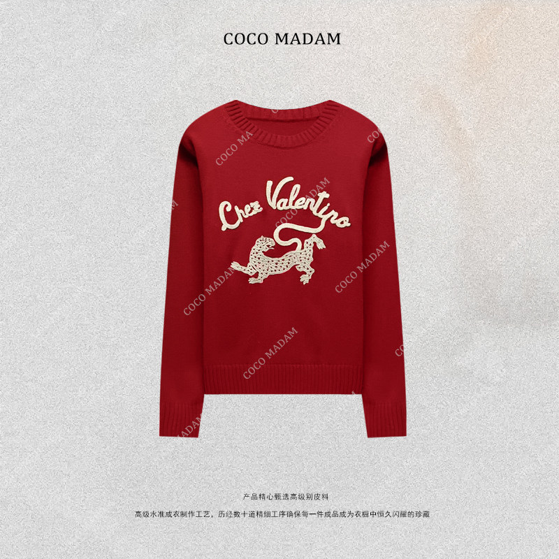 NIUNIU ·T-2030 长袖圆领针织勾花毛针织衫卡通字母套头毛衣