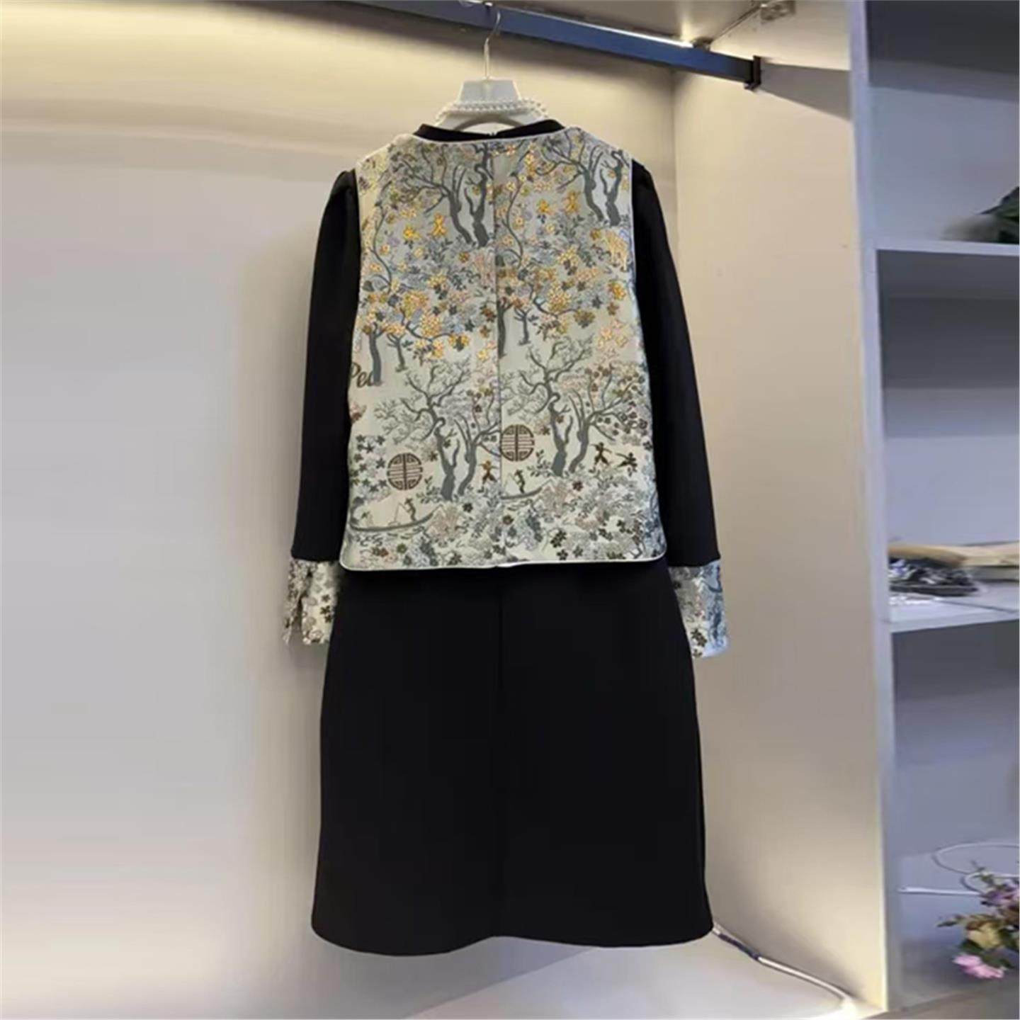 胖MM大码新中式刺绣马甲连衣裙2025秋季新款时尚百搭显瘦两件套装