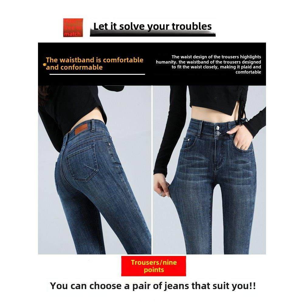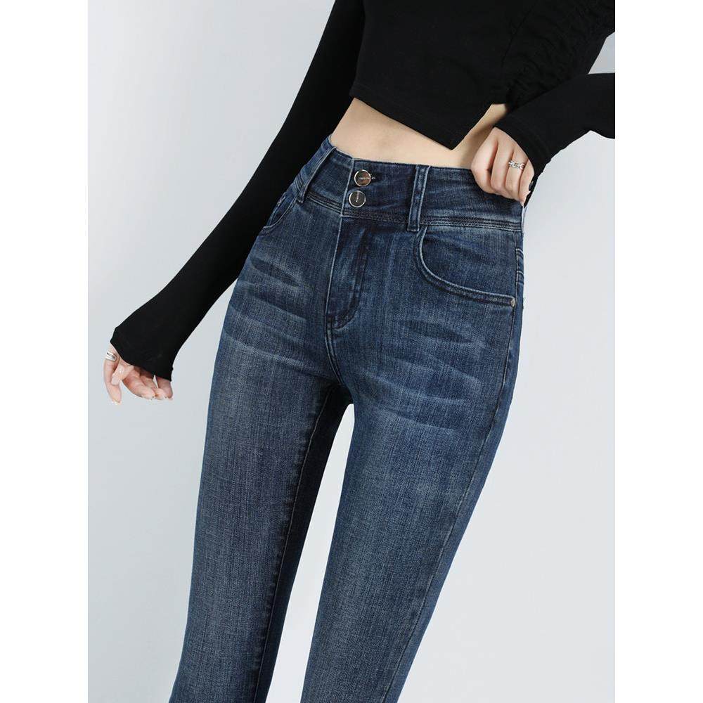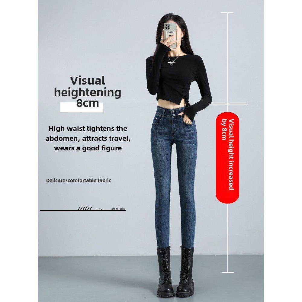 蜜桃臀弹力牛仔裤子修身铅笔裤高腰提臀女秋冬加绒高级纯欲小脚裤