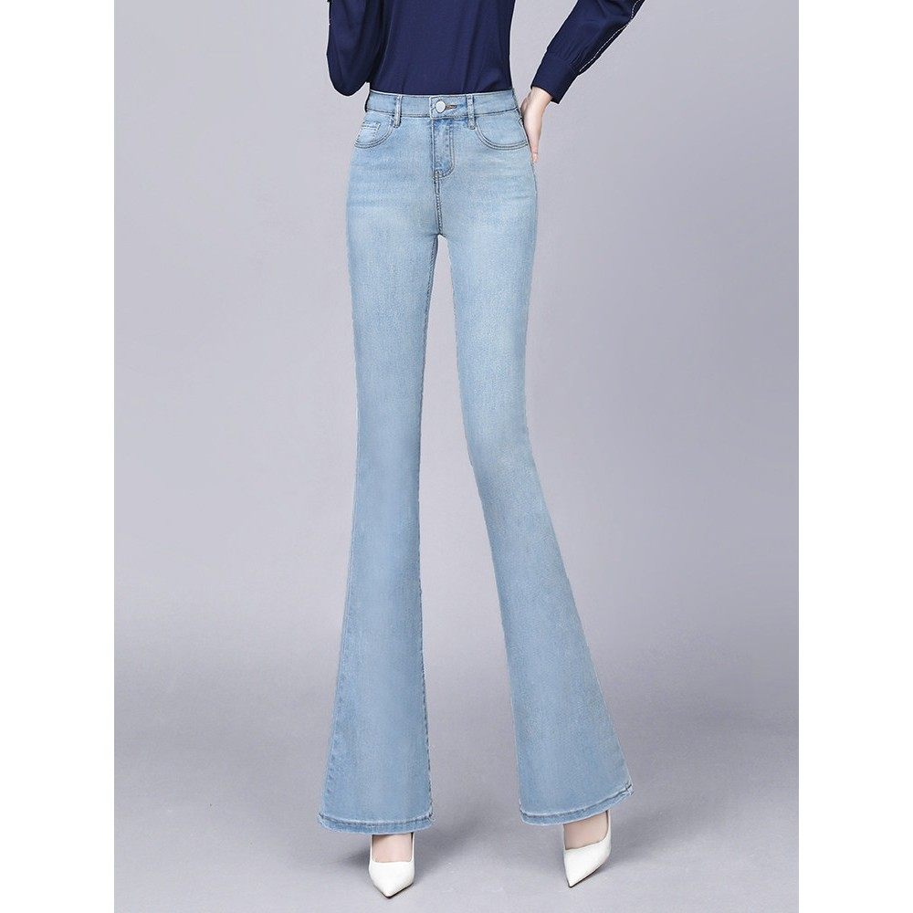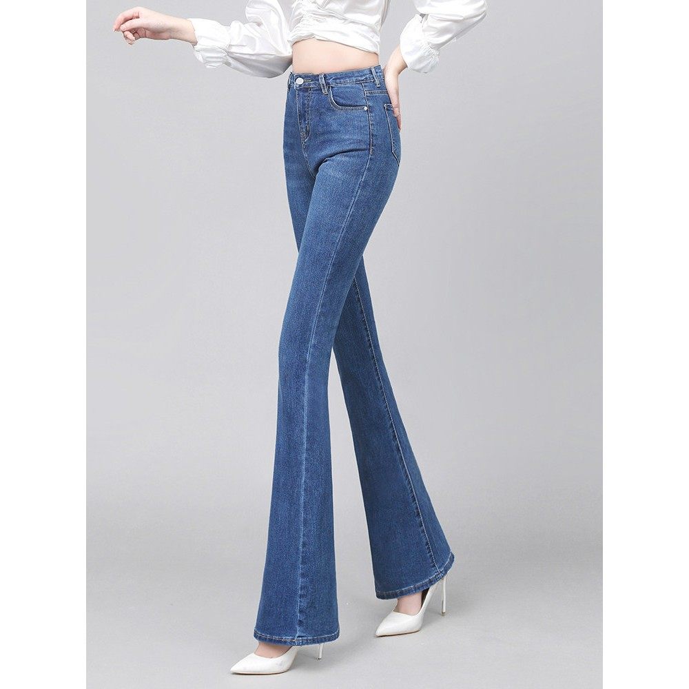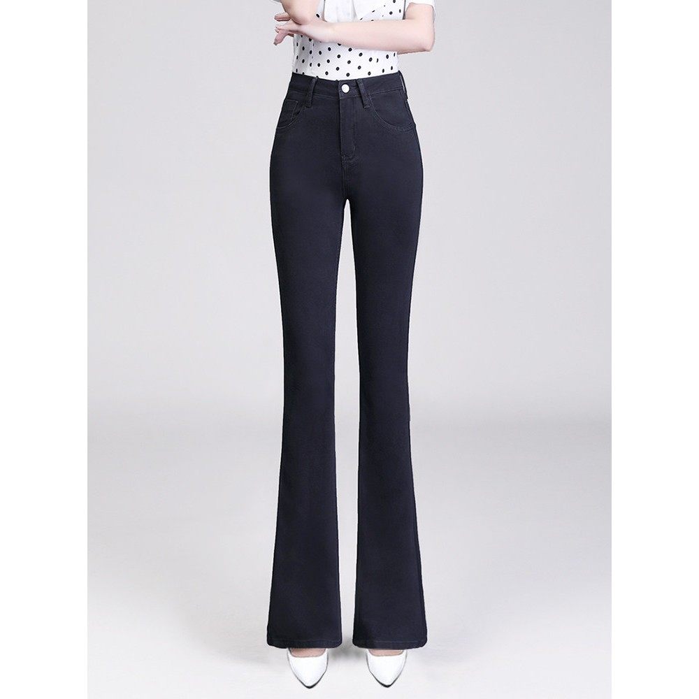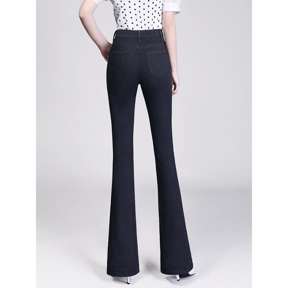 黑色靴型牛仔裤为妇女高腰和修身看2025年春季新的弹性腹部控制修
