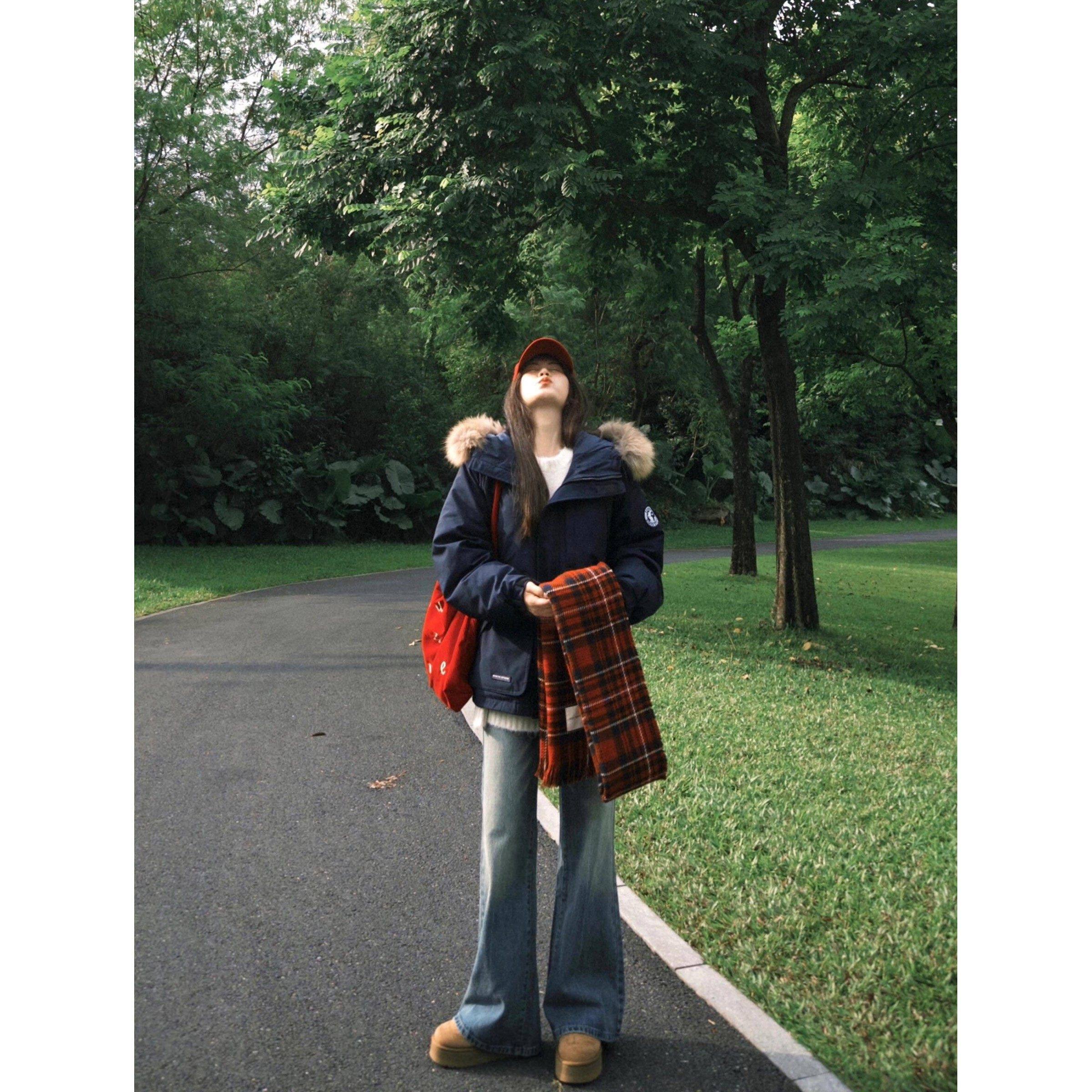 巨好看藏青色派克羽绒服女短款连帽工装加厚冬季毛领90白鸭绒外套