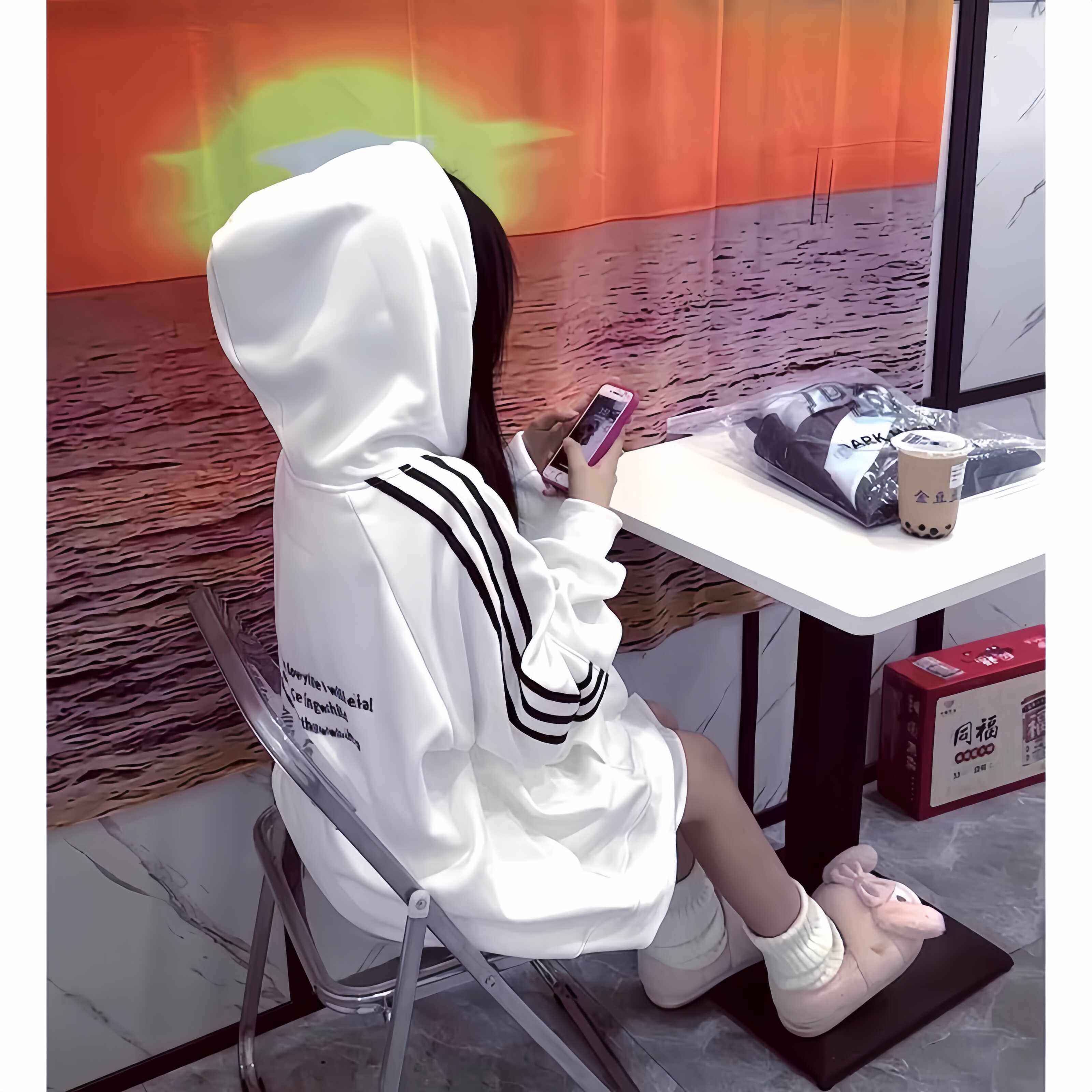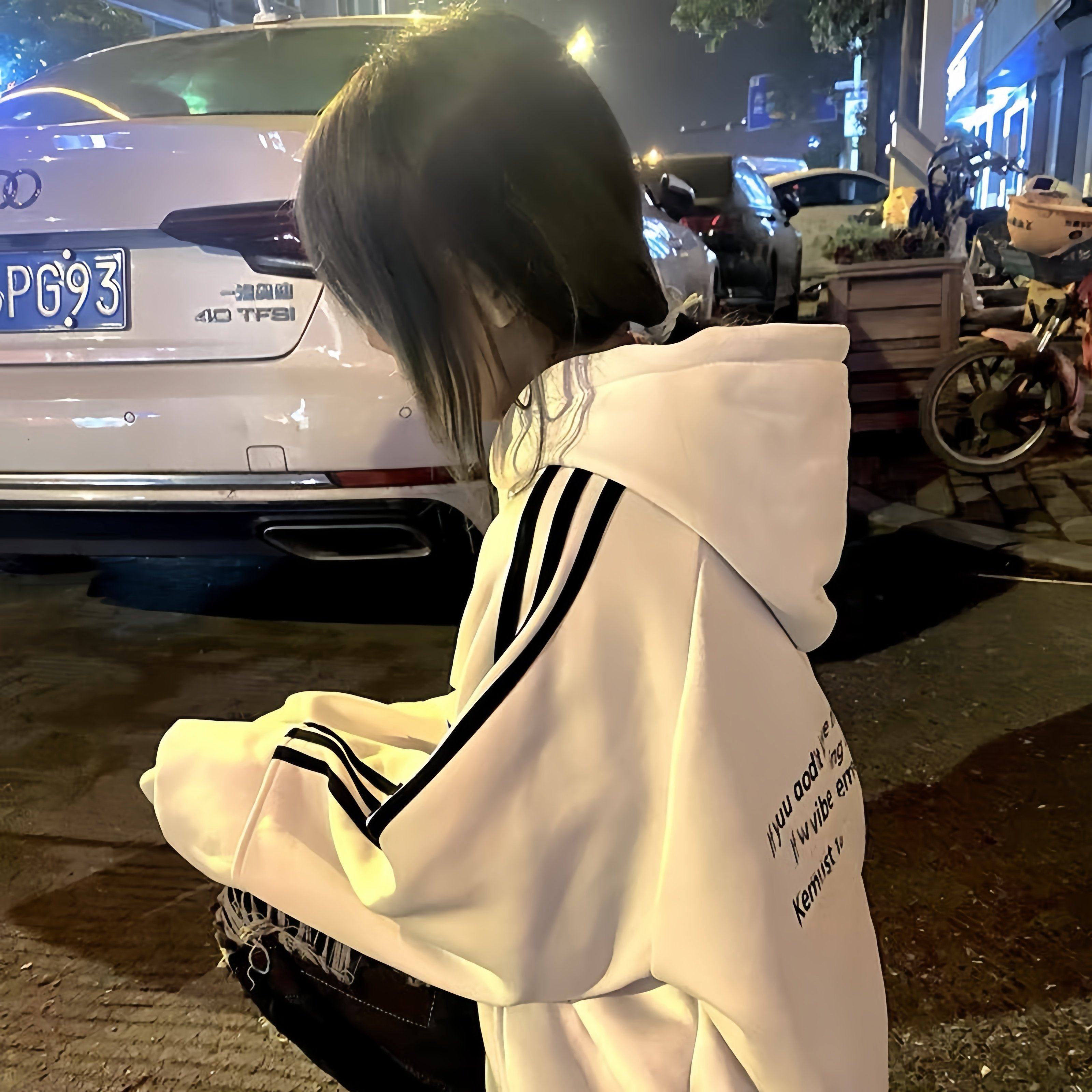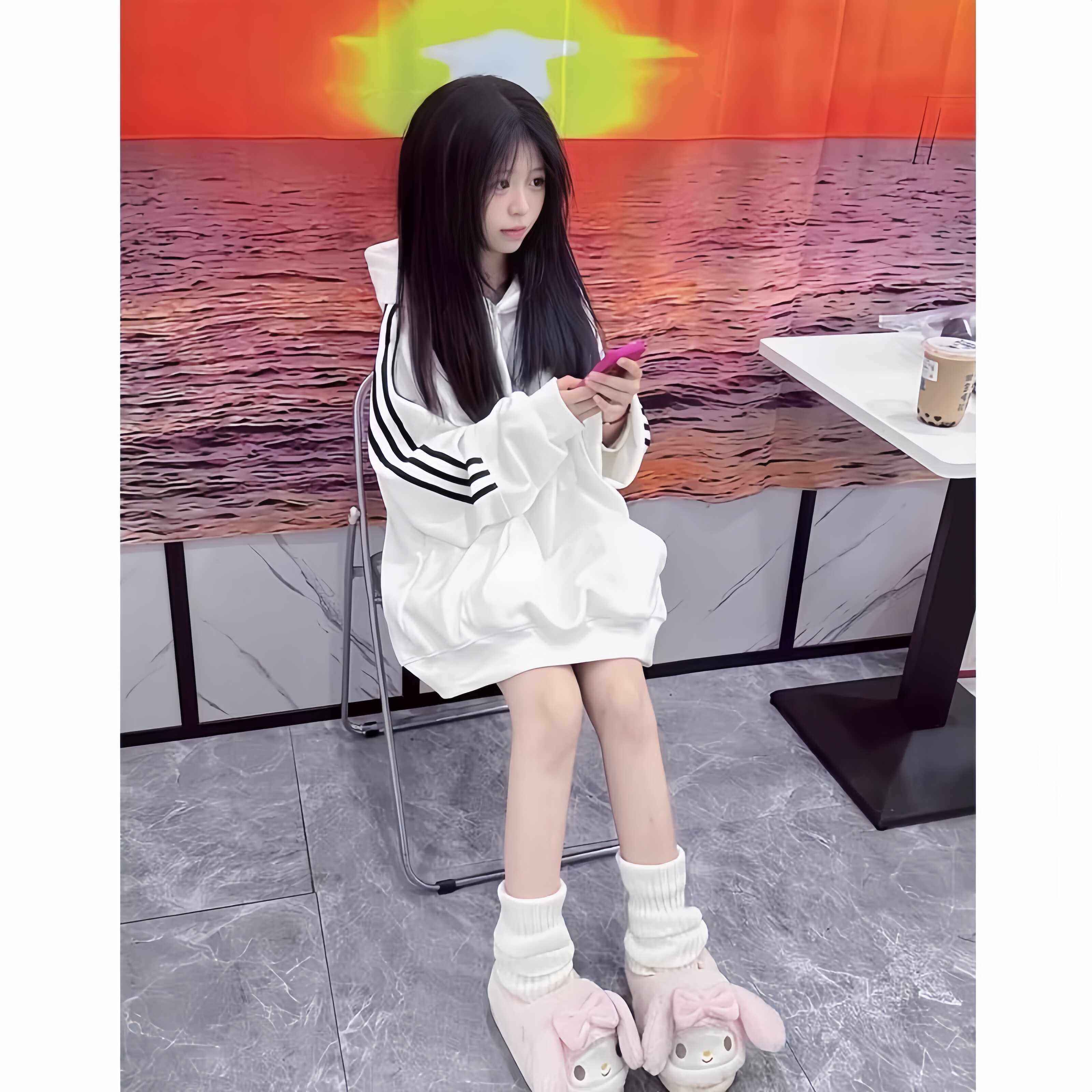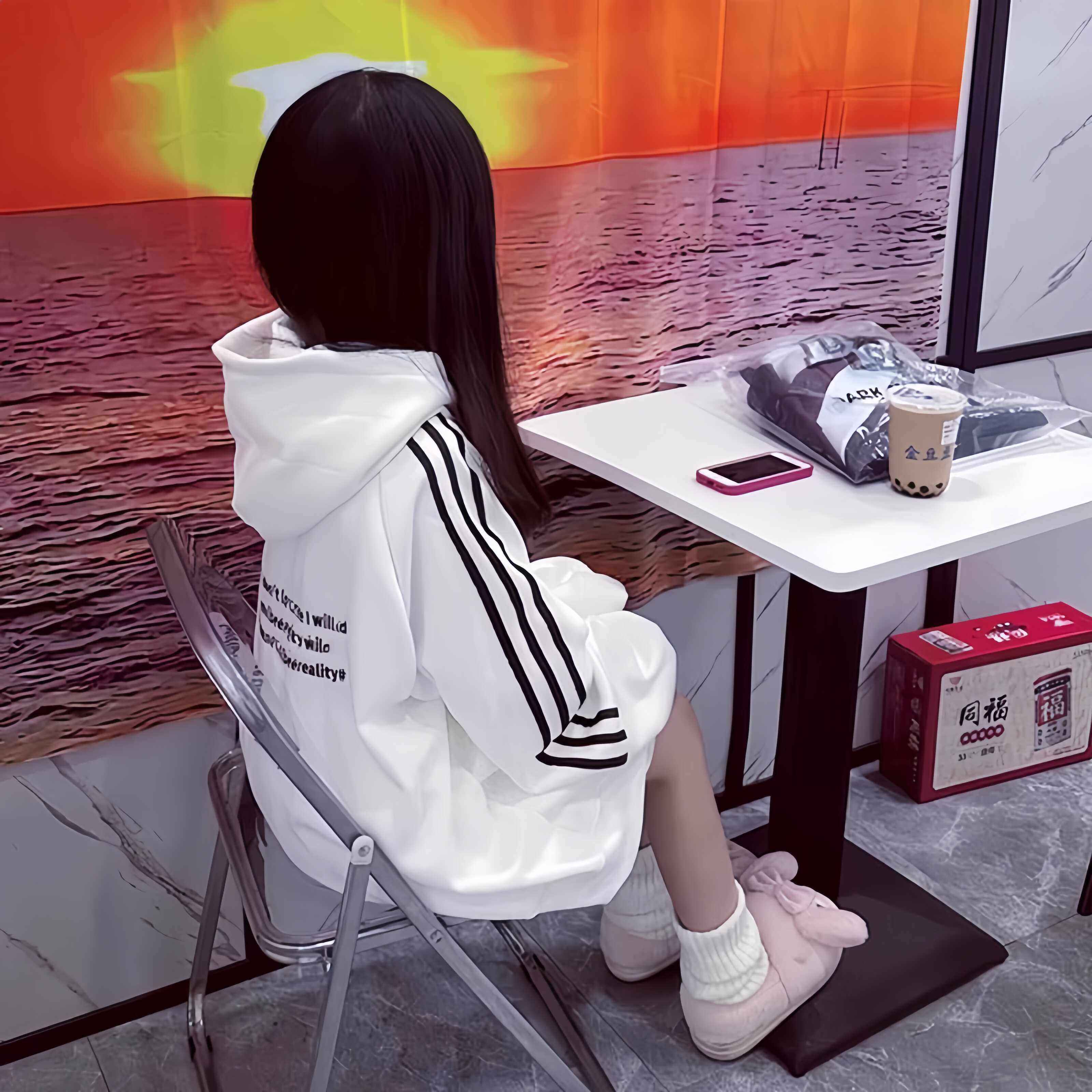 美式覆古三条杠连帽运动衫女秋冬新款初中高中学生宽松oversize外