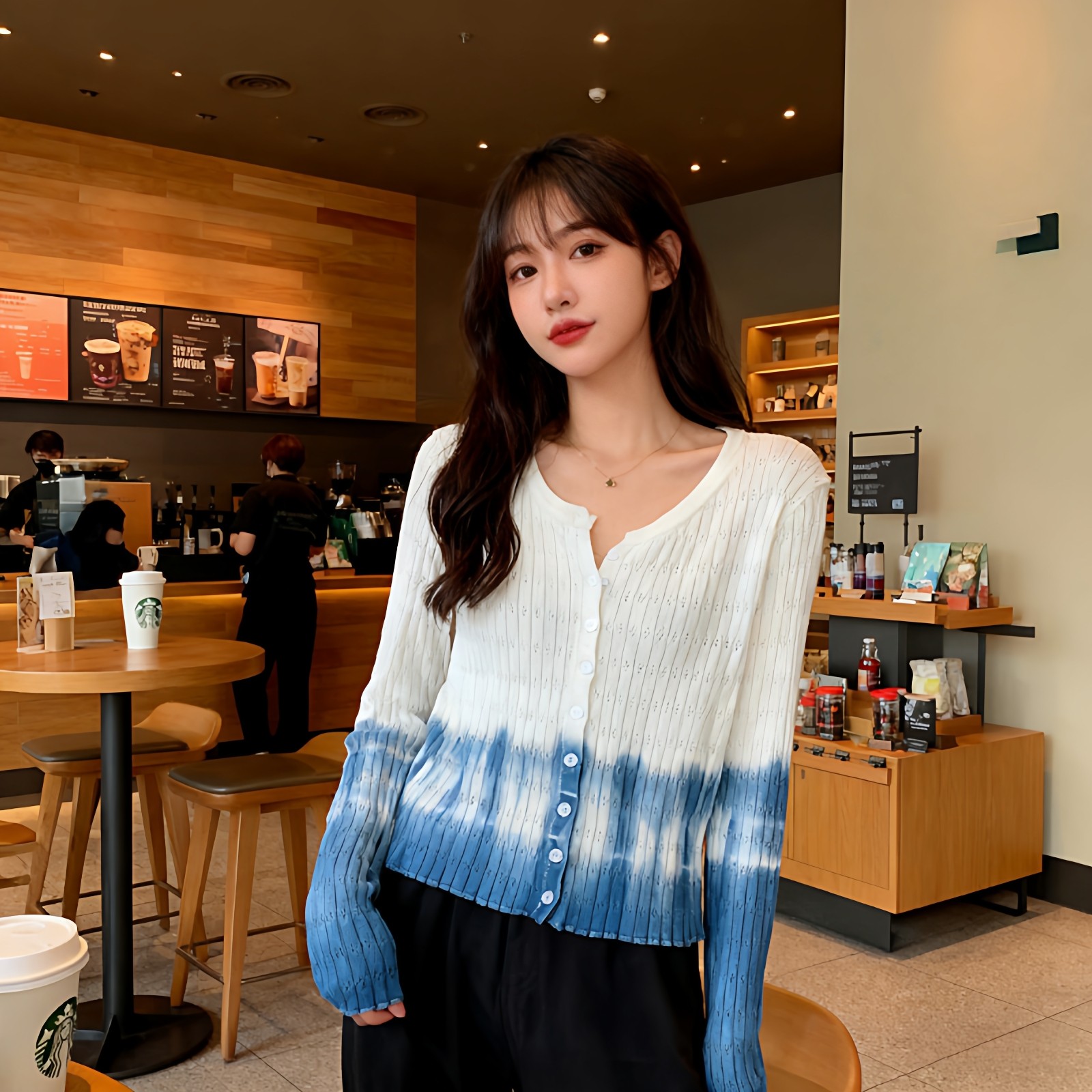 首页> 女装> 扎染渐变色针织开衫女2026春秋新款高级气质洋气毛衣外套女上衣女