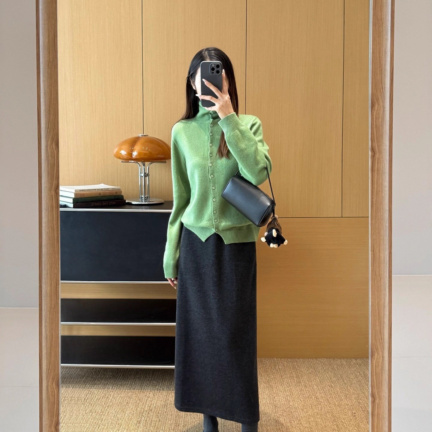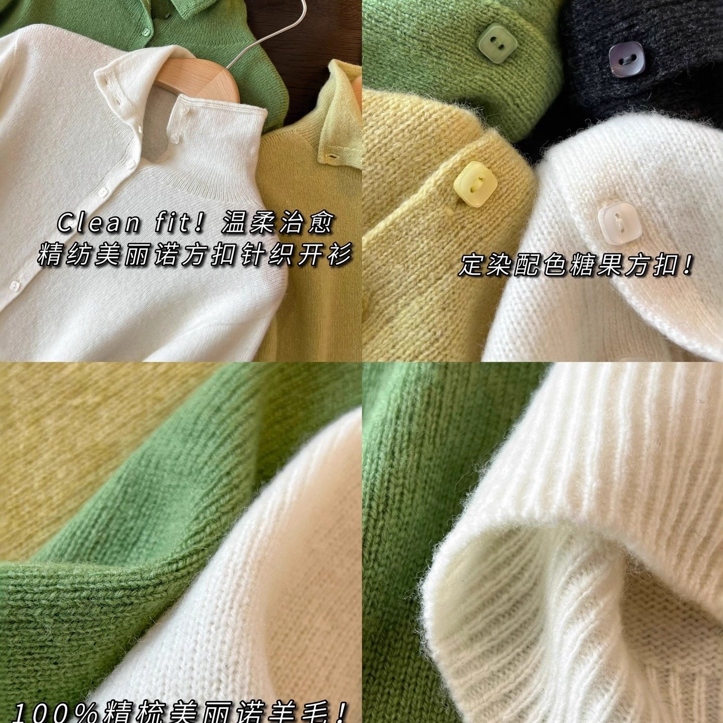 HEART 纯羊毛方糖扣翻领无缝针织开衫高领内搭长袖毛衣外套女