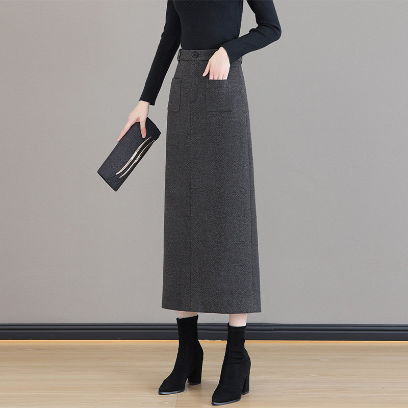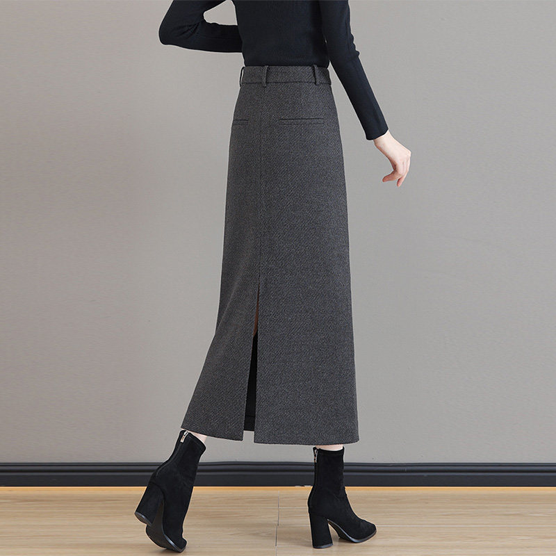 啄木鸟毛呢半身裙女秋冬季2025新款高腰中长款a字裙直筒包臀裙子
