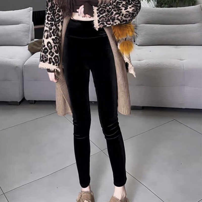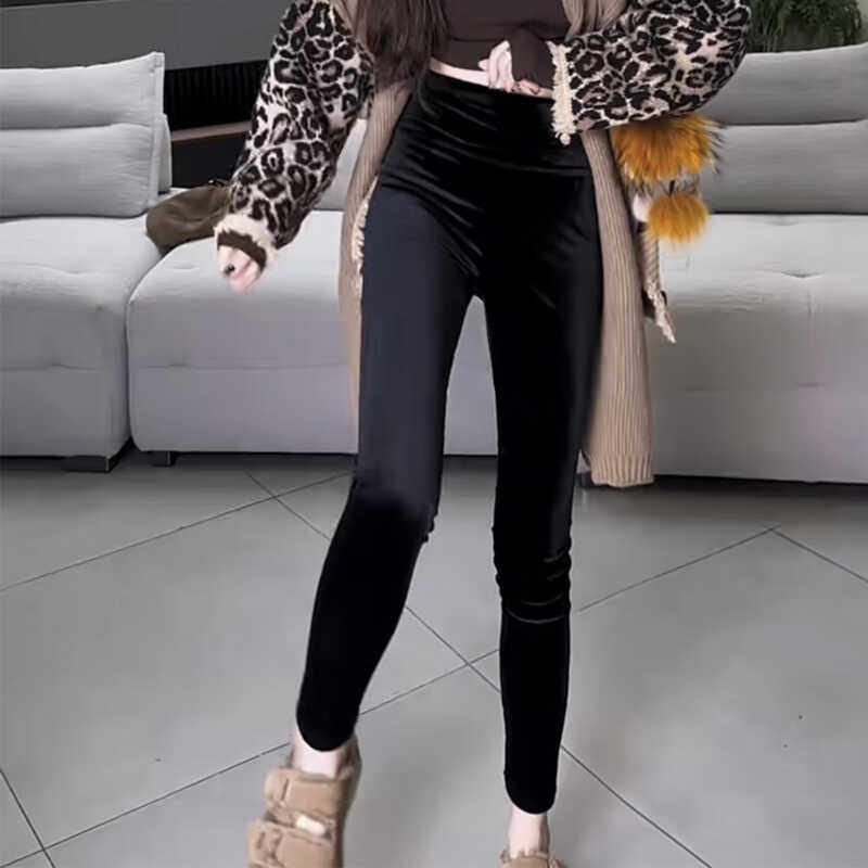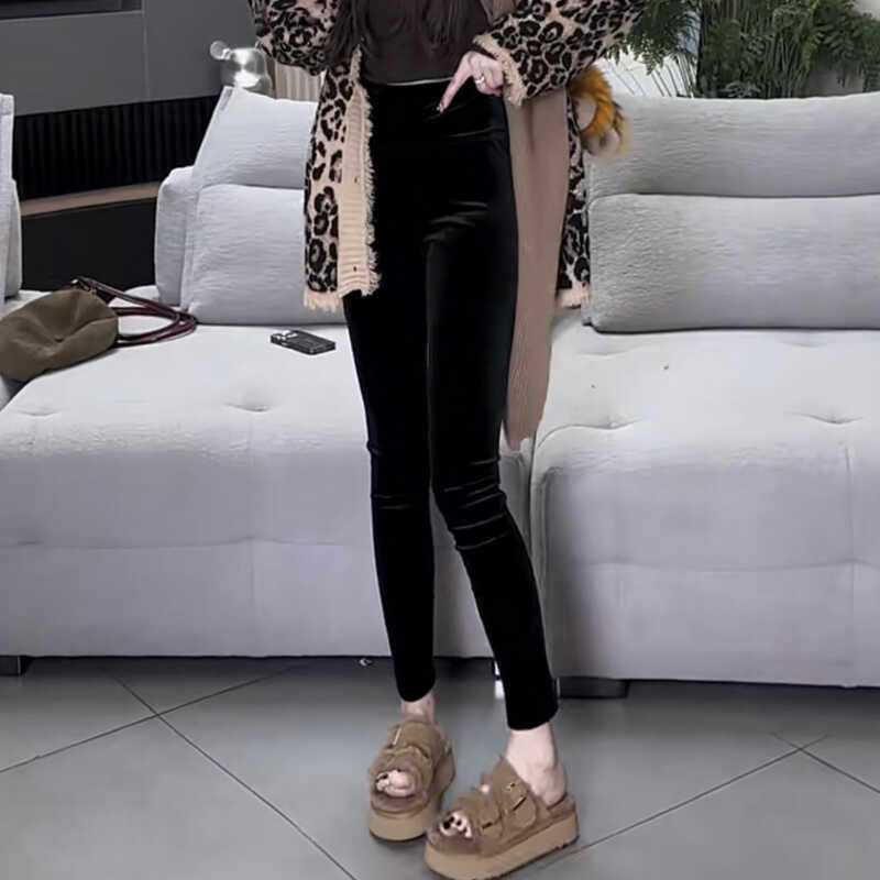 金丝绒打底裤女秋冬外穿2024新款松紧腰紧身弹力小脚九分铅笔裤潮