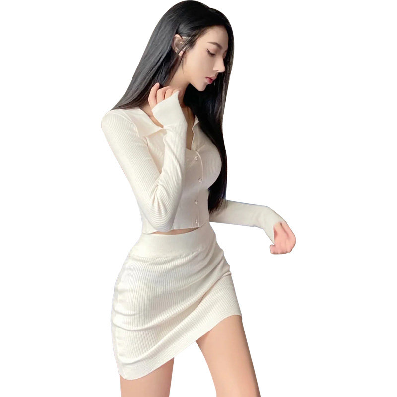 2023秋季新款针织衫长袖毛衣裙子包臀裙修身连衣裙辣妹时尚套装女