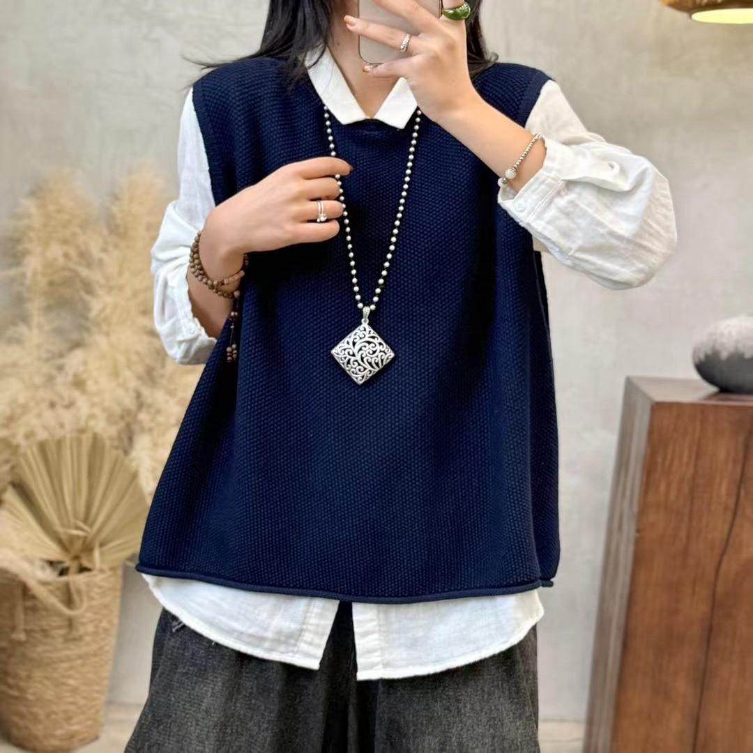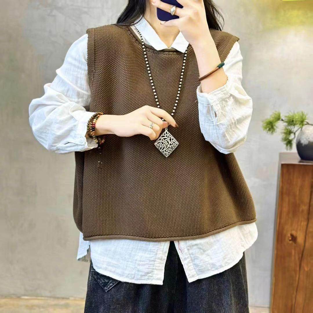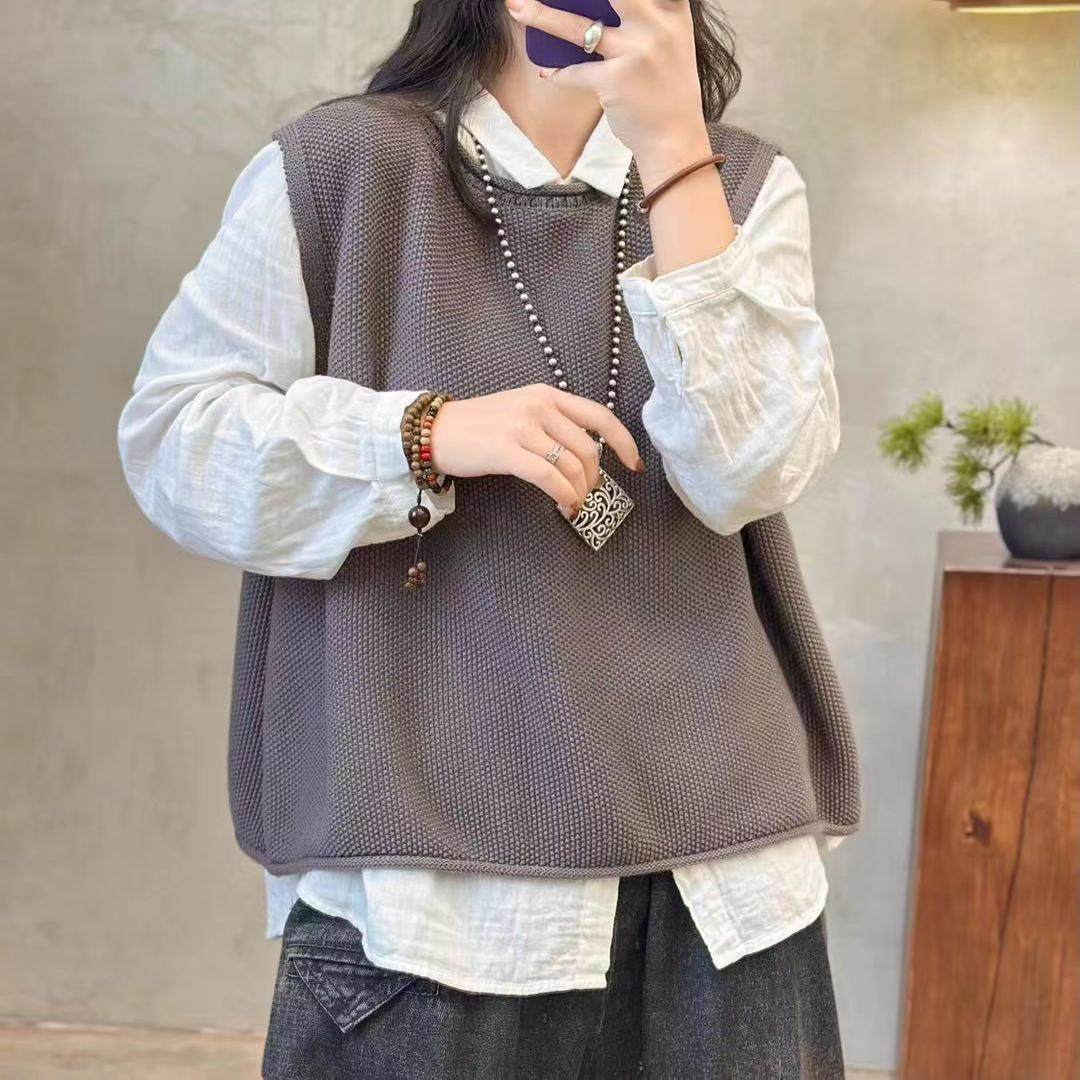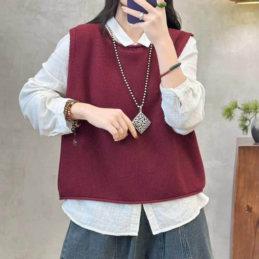 2026春季新款圆领套头棉线针织马甲女休闲百搭叠穿外搭上衣5188
