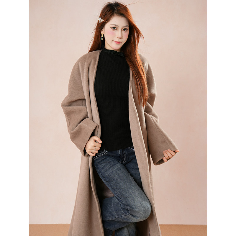 【晚秋电影】法式高级气质长款大衣秋冬新款宽松简约时尚百搭外套