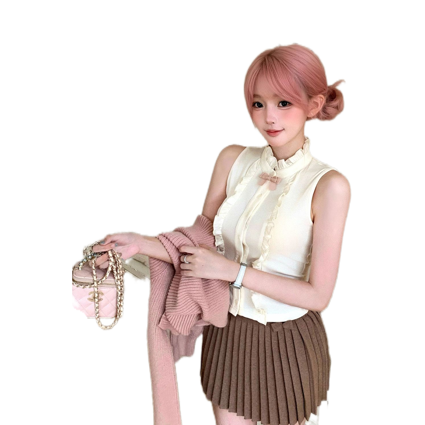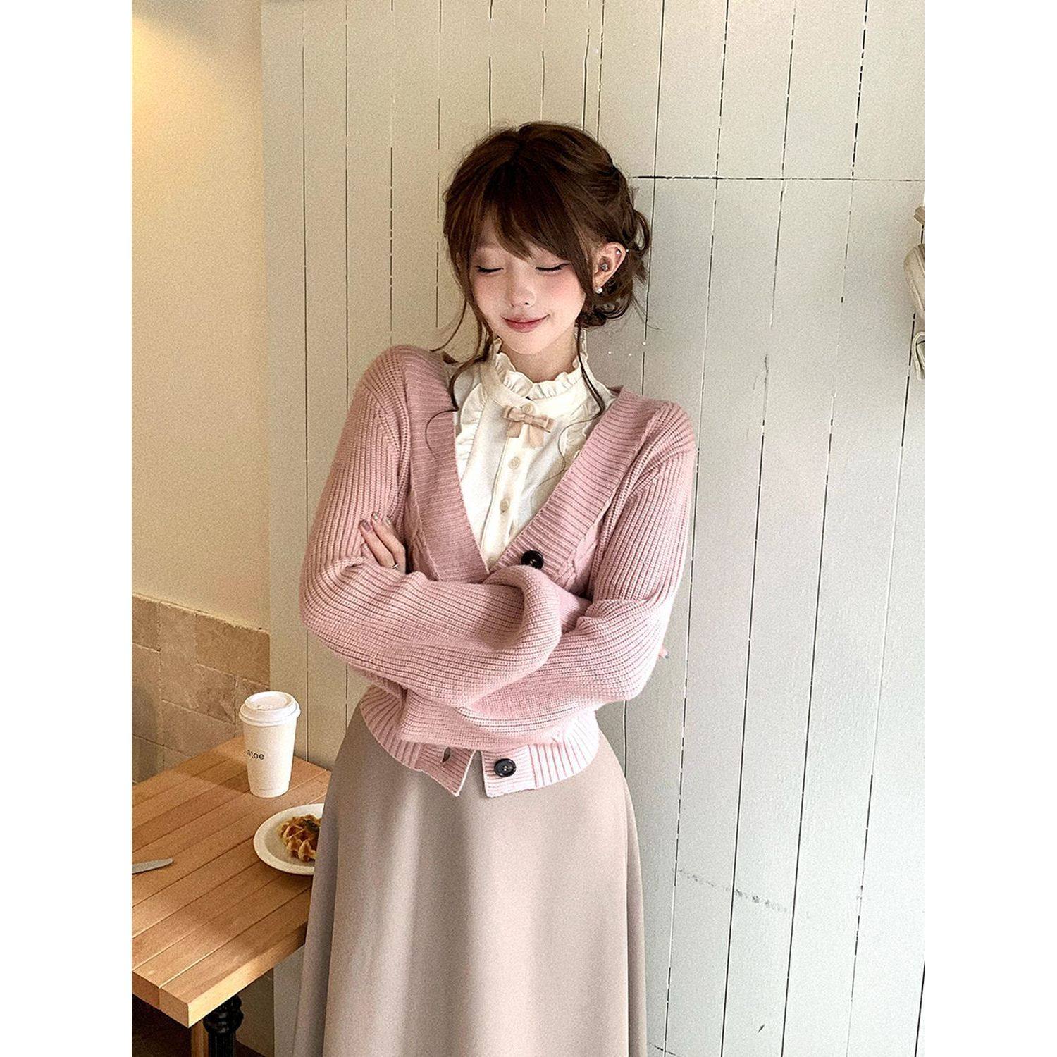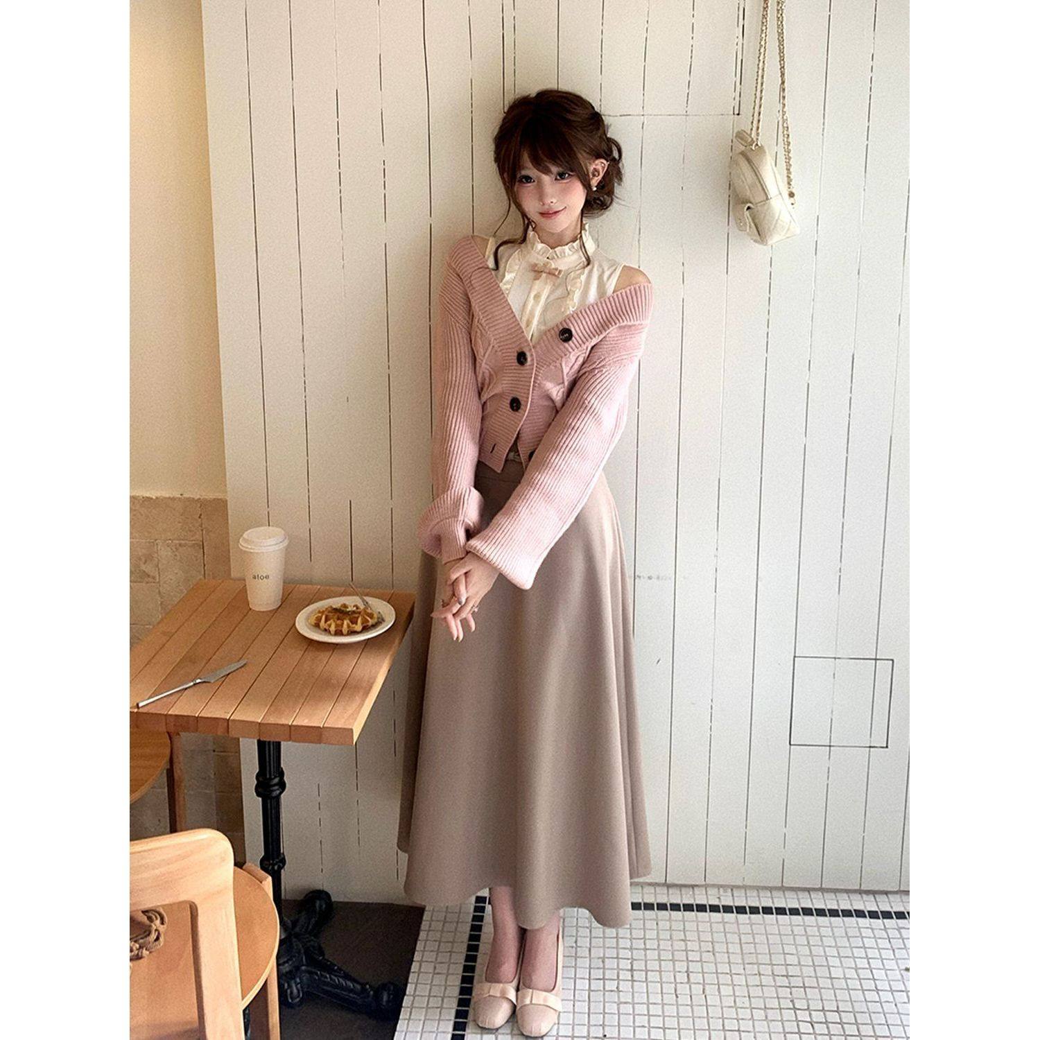 花熏凛然 时尚气质百搭显瘦毛织外套+打底背心+半身裙套装秋冬女