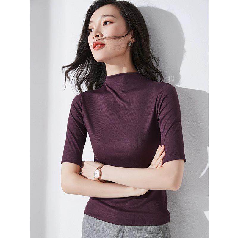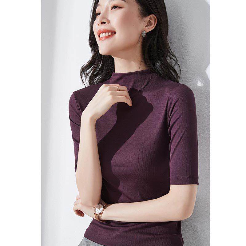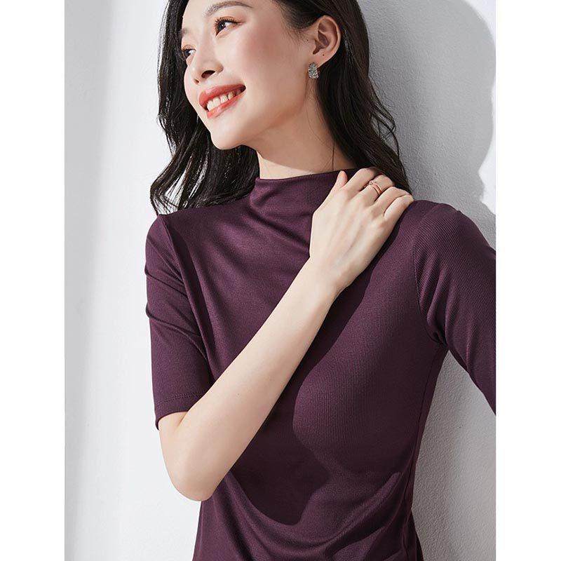 半高领打底衫女中袖春夏2025新款修身T恤五分袖时尚简约内搭上衣