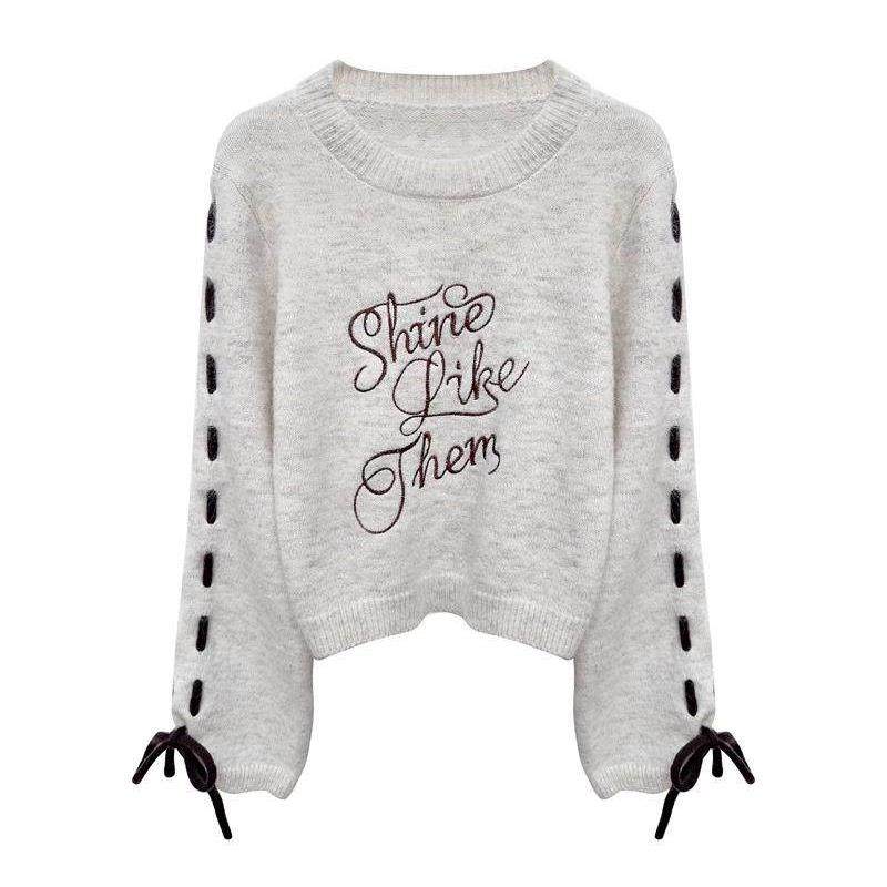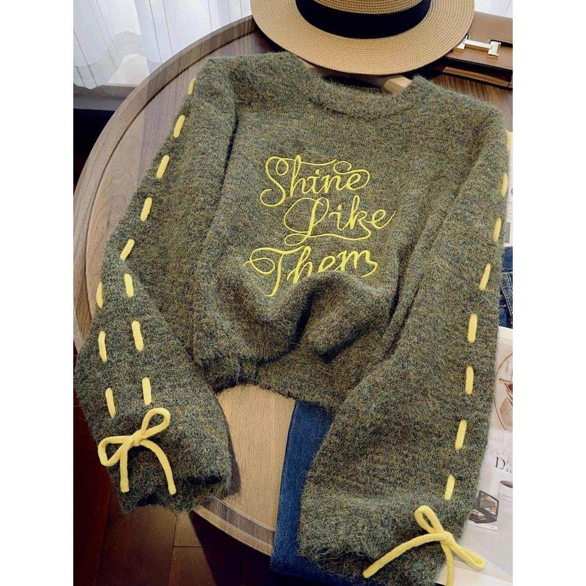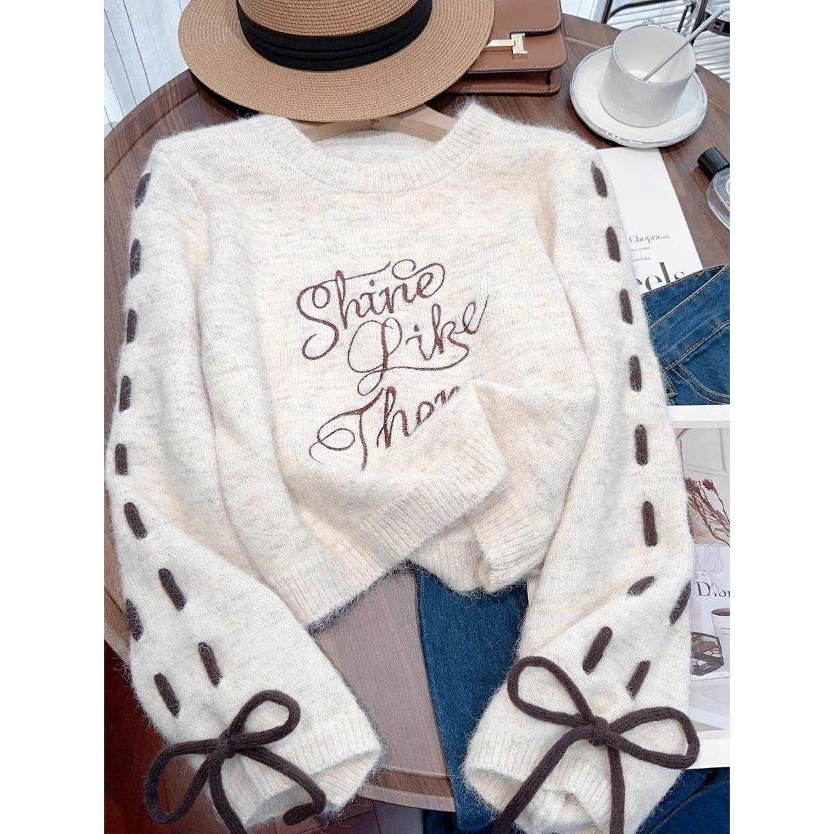 首页> 女装> 毛衣女春季2025年新款宽松慵懒风短款抽绳字母刺绣圆领针织衫上衣