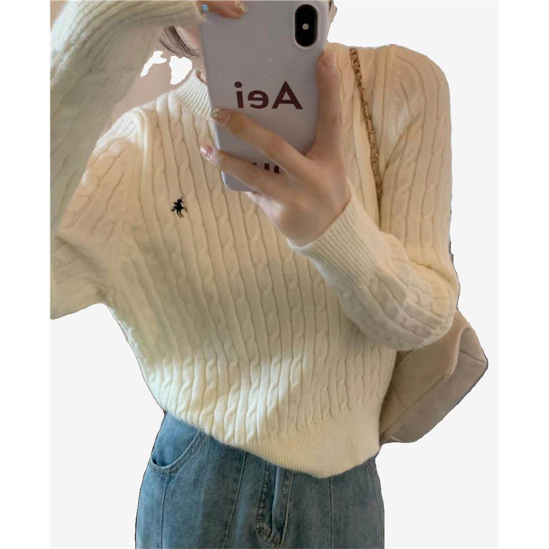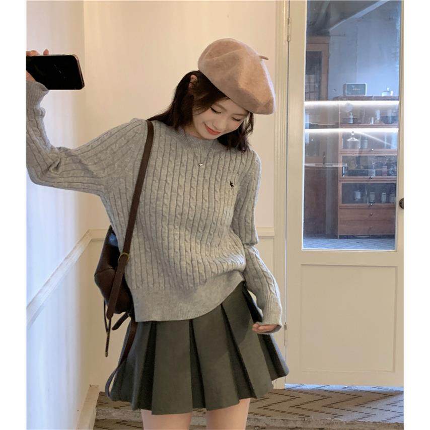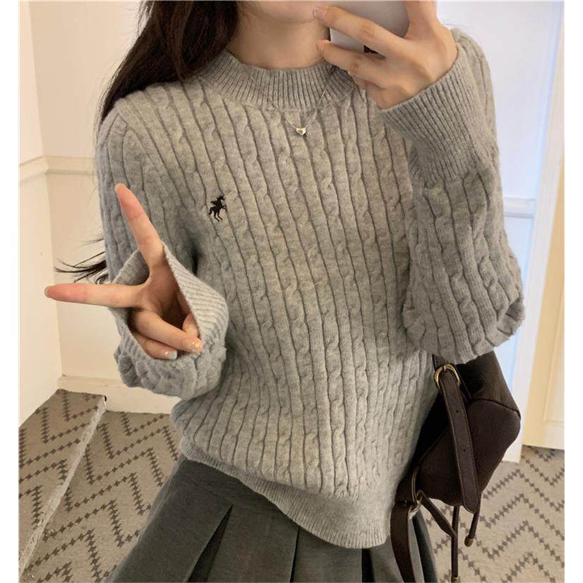 秋冬2025年新款韩系麻花圆领慵懒毛衣高级感刺绣长袖针织衫上衣女