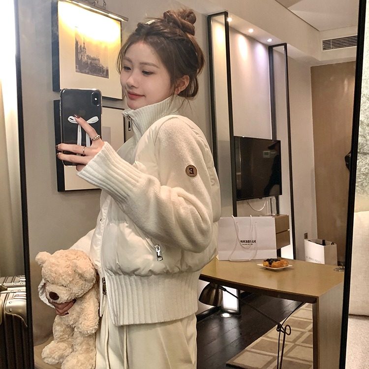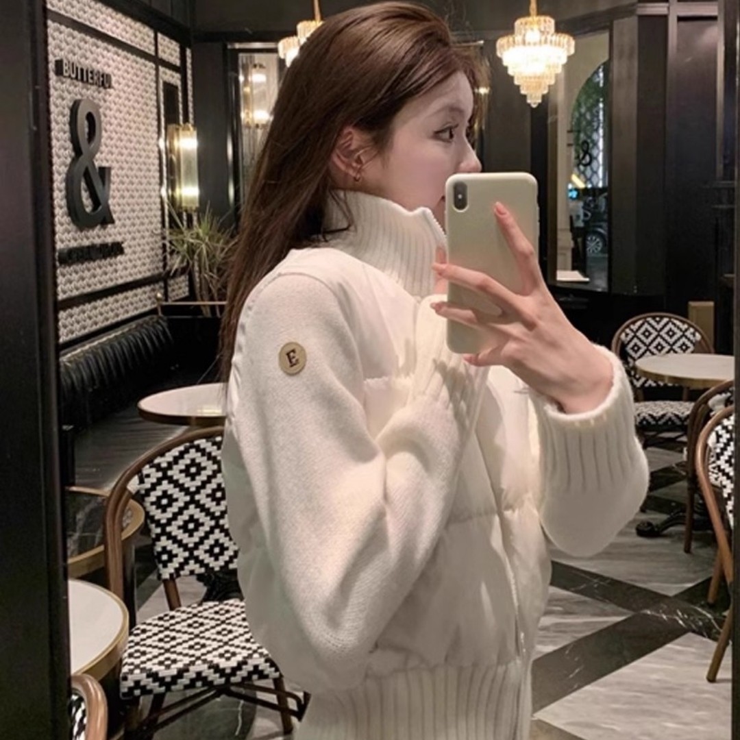 2025秋冬新款法式气质设计感小众拼接毛衣短款白色羽绒服保暖外套