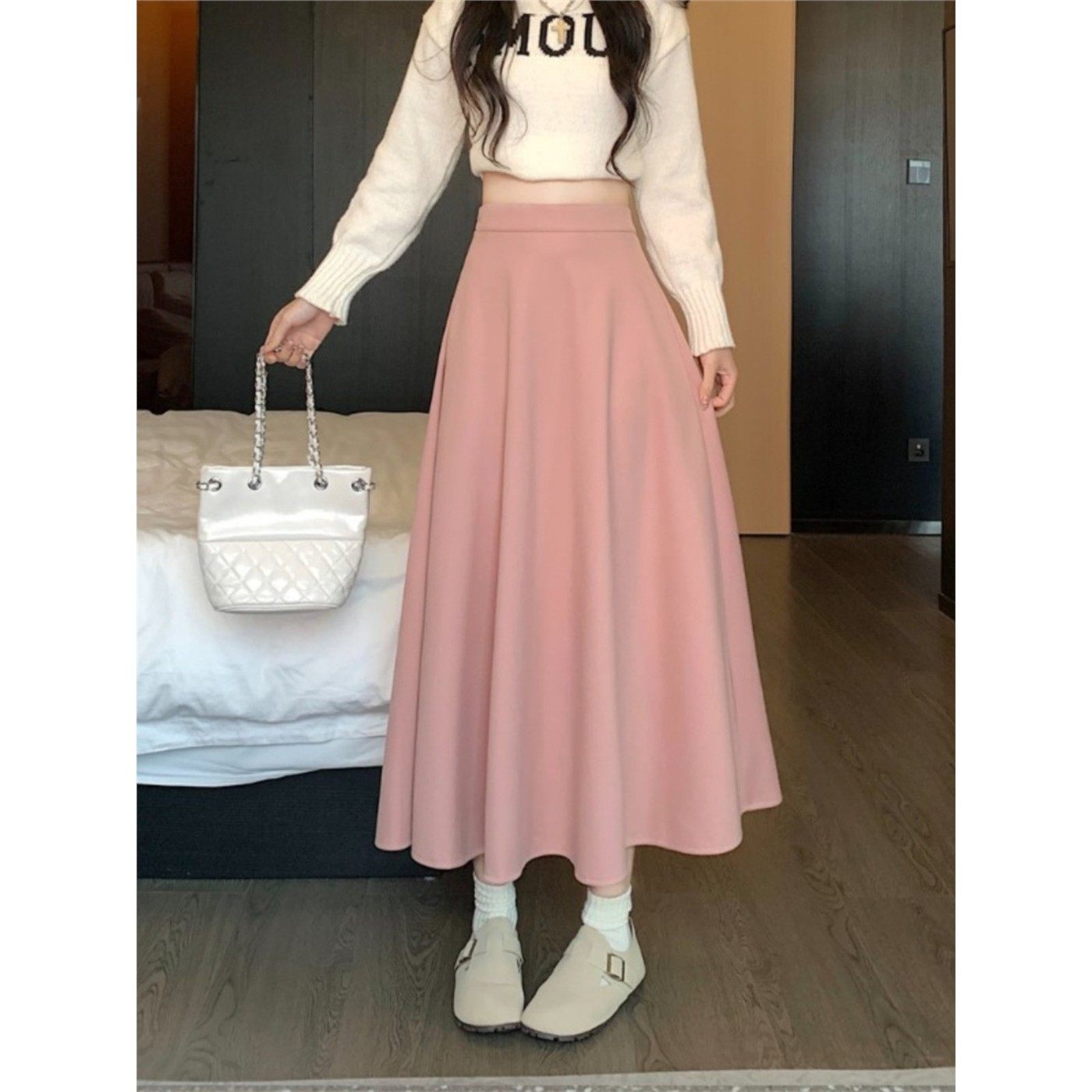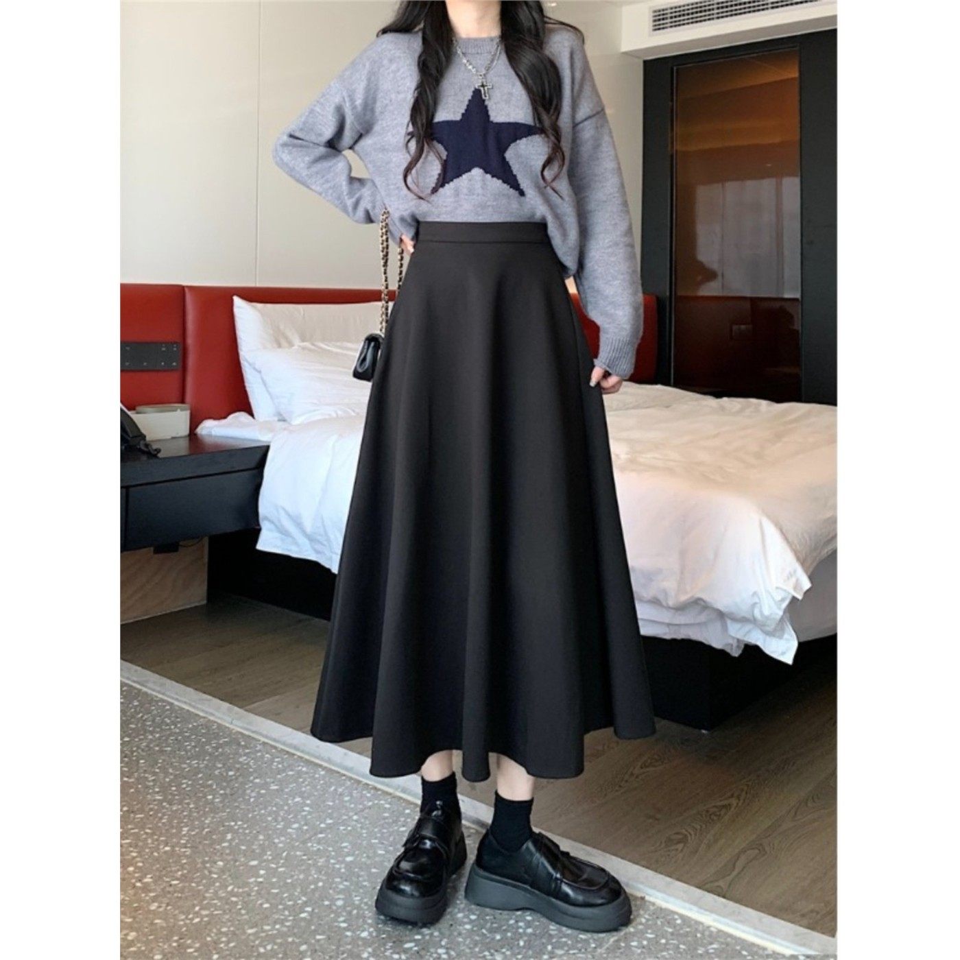 加厚毛呢百褶裙中长款半身裙秋季大码胖mm梨形显瘦a字伞裙大摆裙