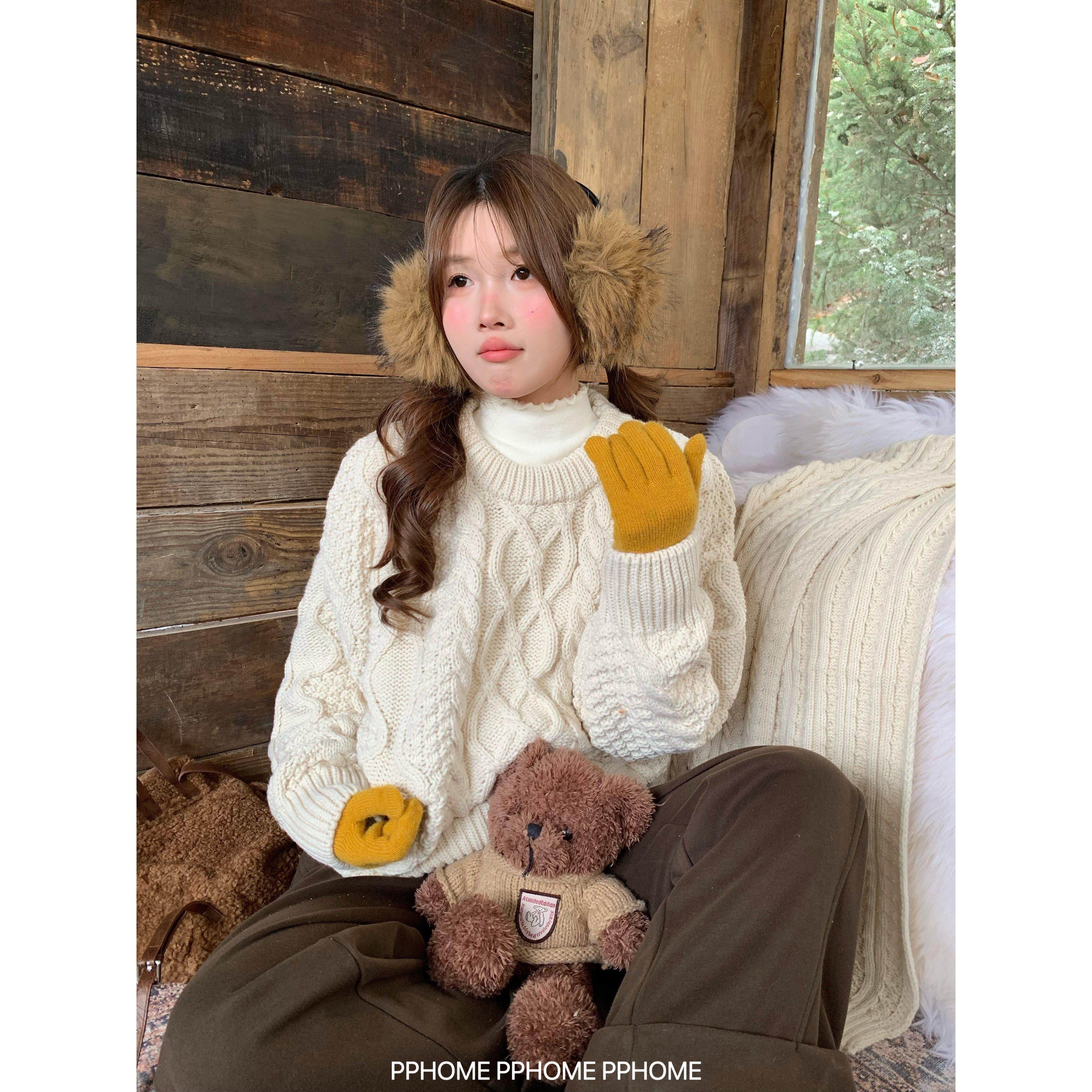 PPHOME自制~麻花毛衣 重工韩代圣诞款粗针复古秋冬百搭宽松针织衫