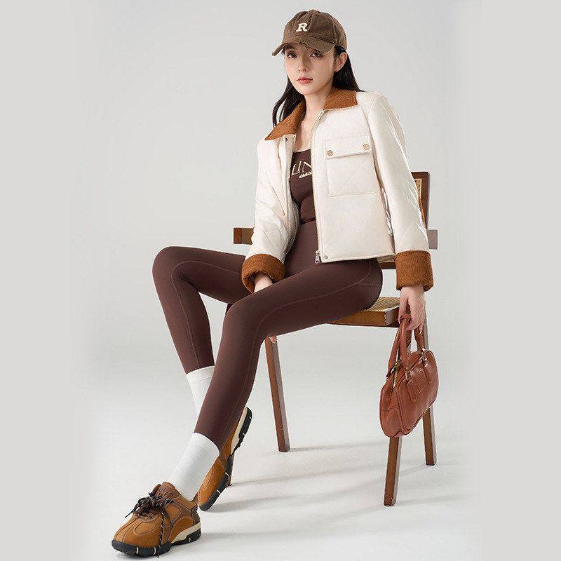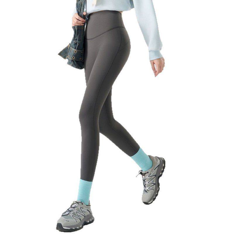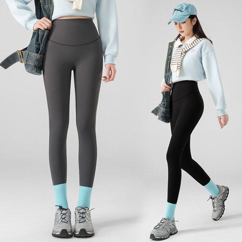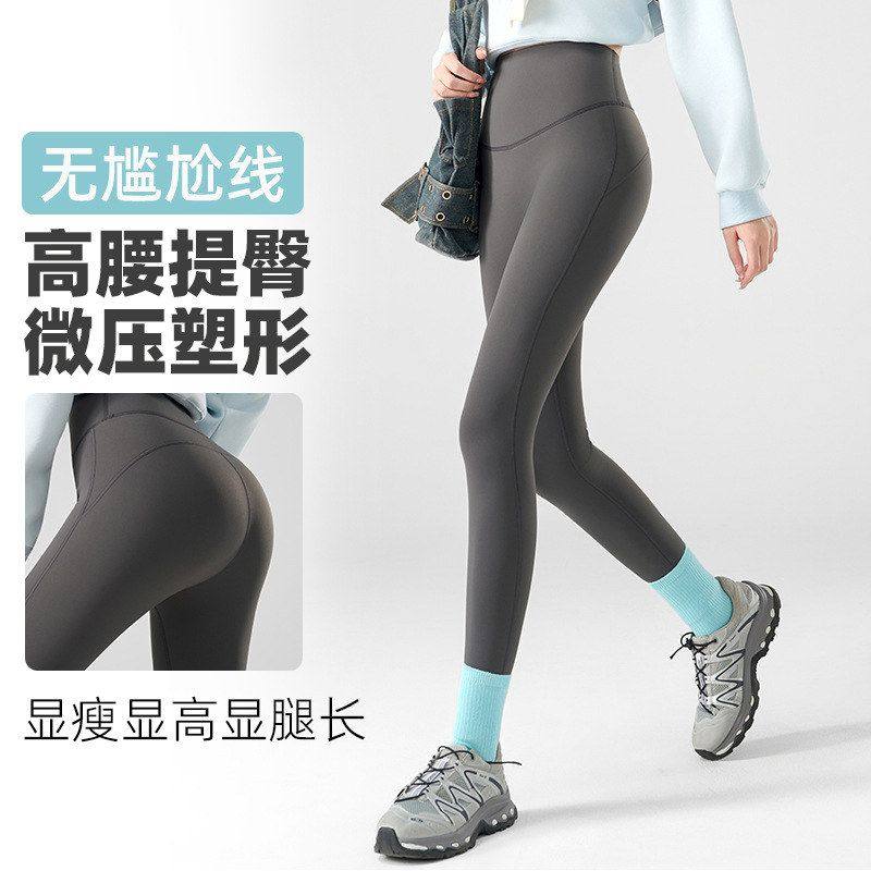 lulu瑜伽裤加绒加厚女外穿无痕裸感高腰紧身显瘦修身九分鲨鱼裤打