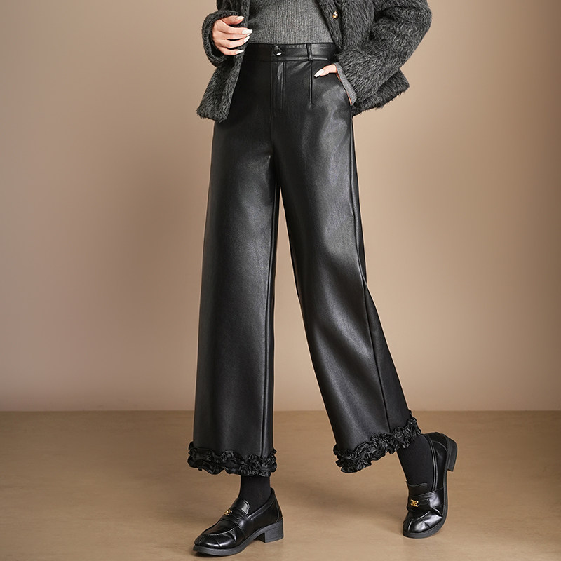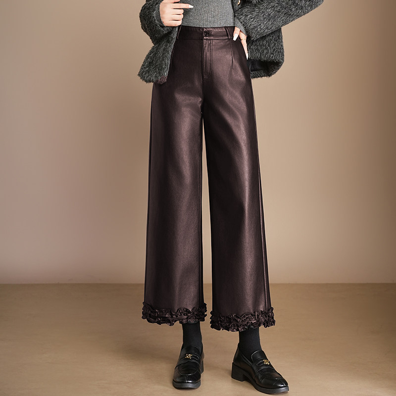 首页> 女装> 木耳花边PU皮裤九分阔腿裤女2025新款秋冬高腰宽松韩版通勤休闲裤