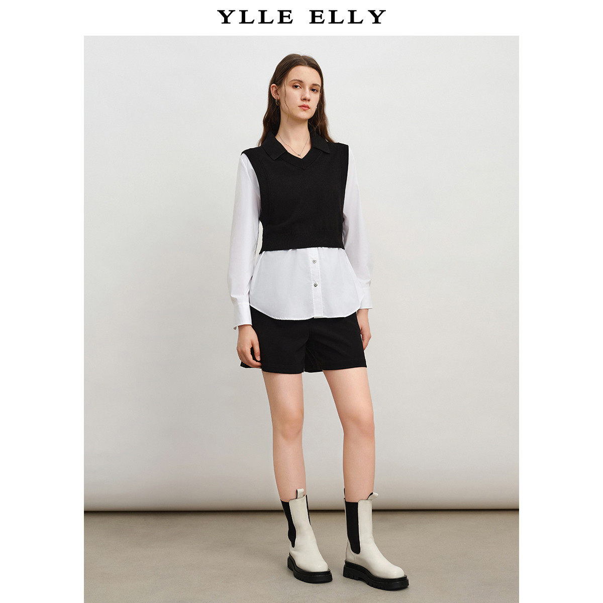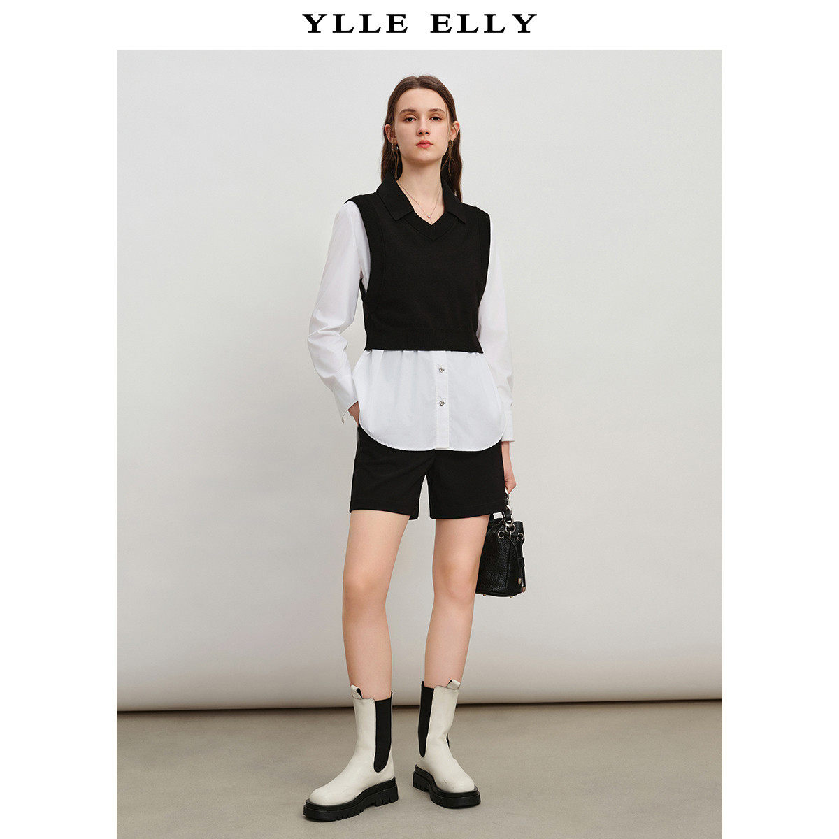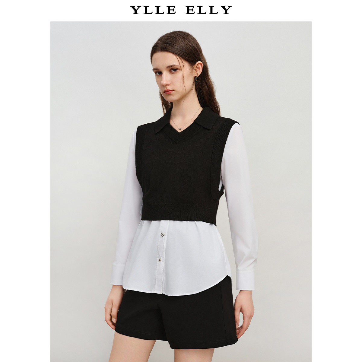 【呼呼严选粉丝专属】撞色假两件针织衫秋季拼接设计感套头衫